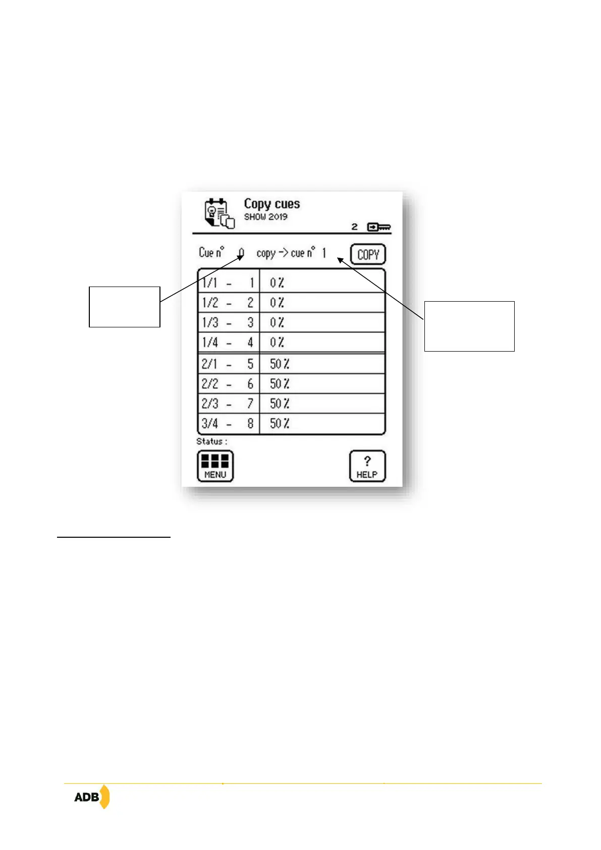 To select a cue, position on the cue number (highlighted), either by touching the screen or using the wheel.