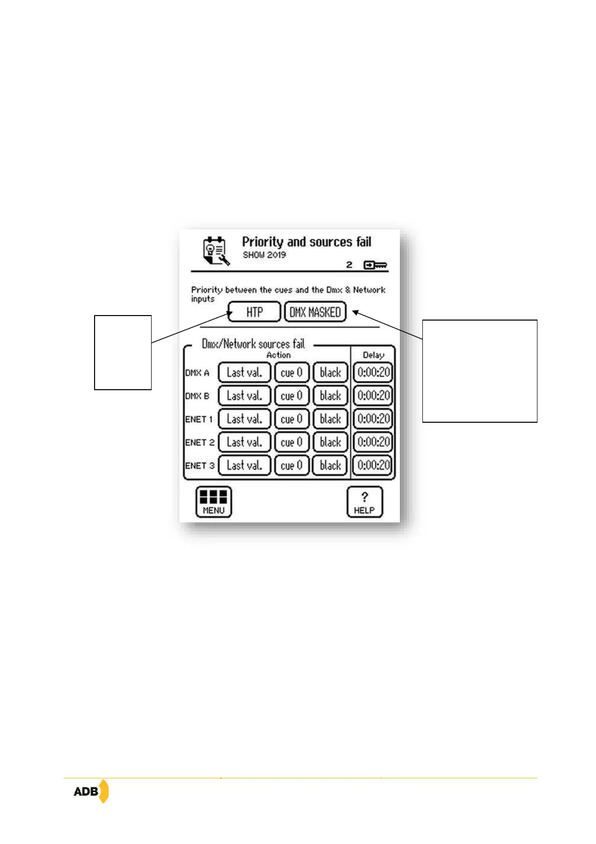 This function is used to prioritise the selection amongst the DMX/ARTNET/sACN inputs and cue played, and