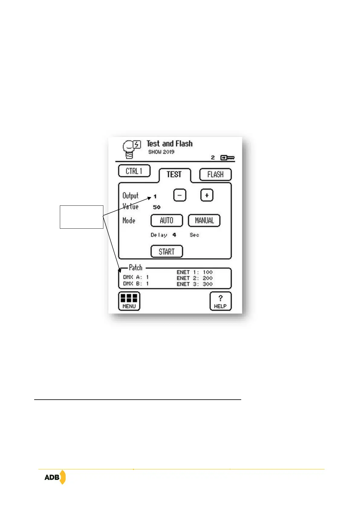 Note: When a test or a flash is launched, the DMX/ARTNET /sACNare cut off.
