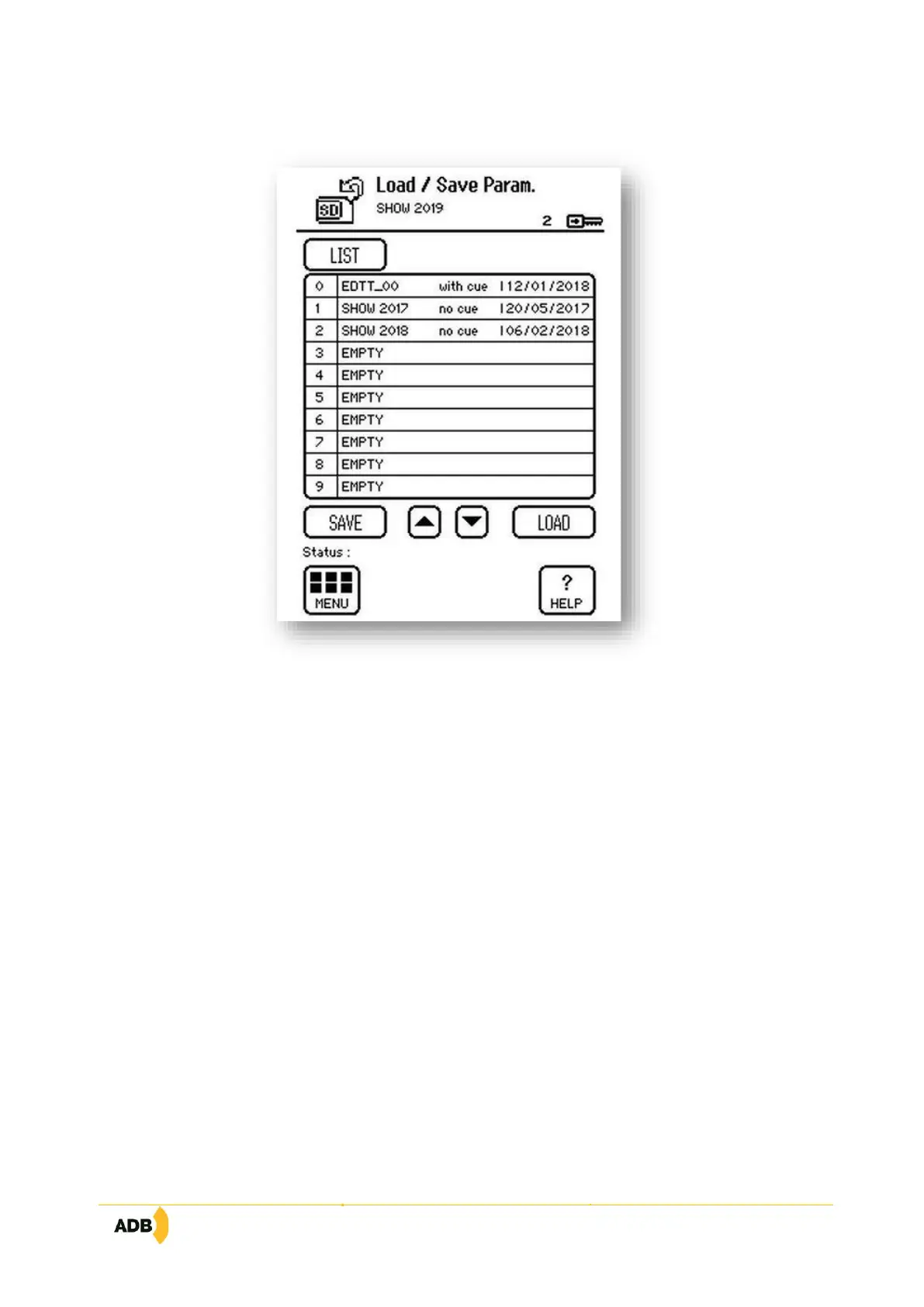 In order to conduct a save (backup) or load operation, the SD card must be present in the slot planned in