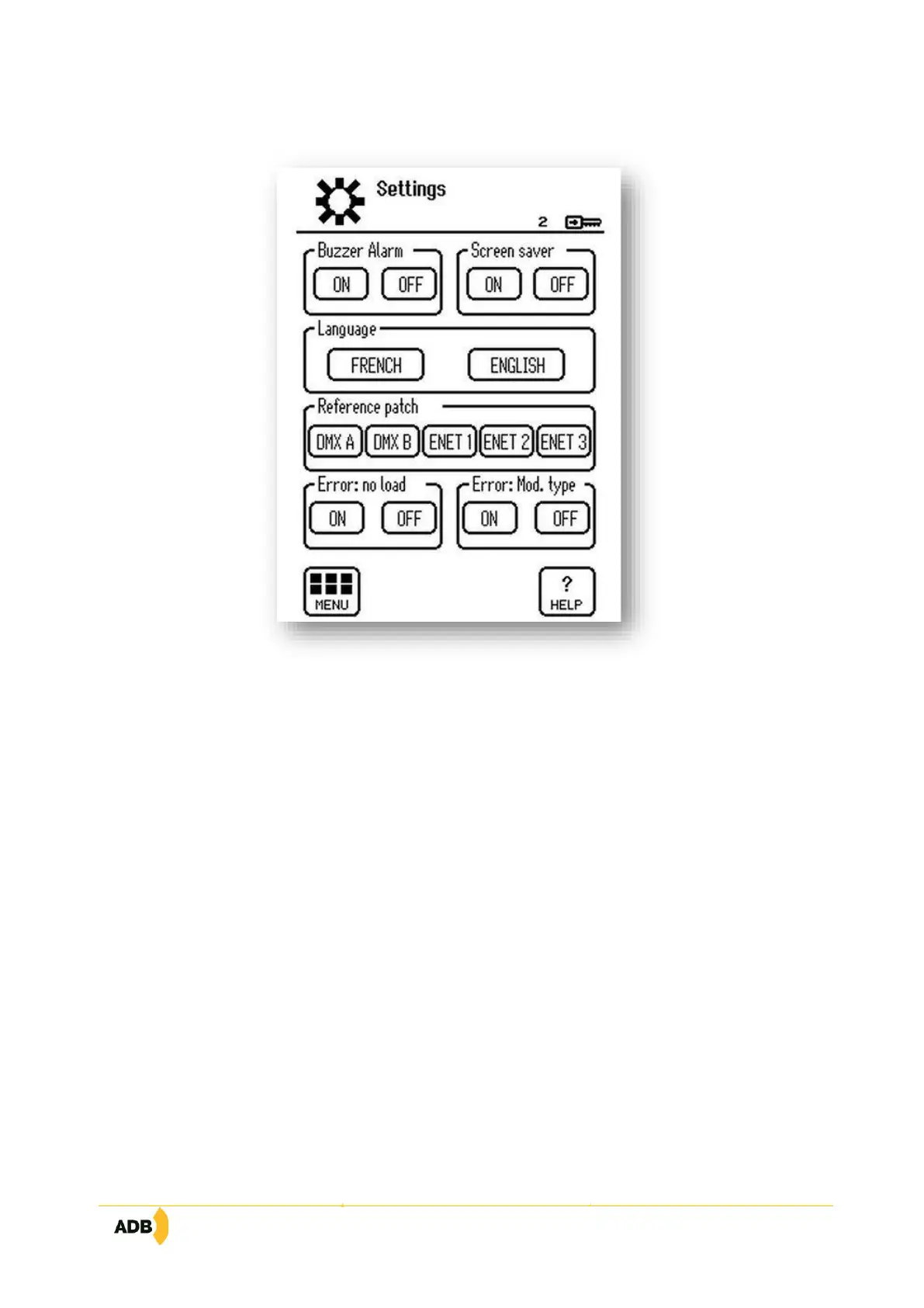− Screensaver: If the screensaver is active ("ON"), the TTD HUMAN INTERFACE (HMI) returns to the