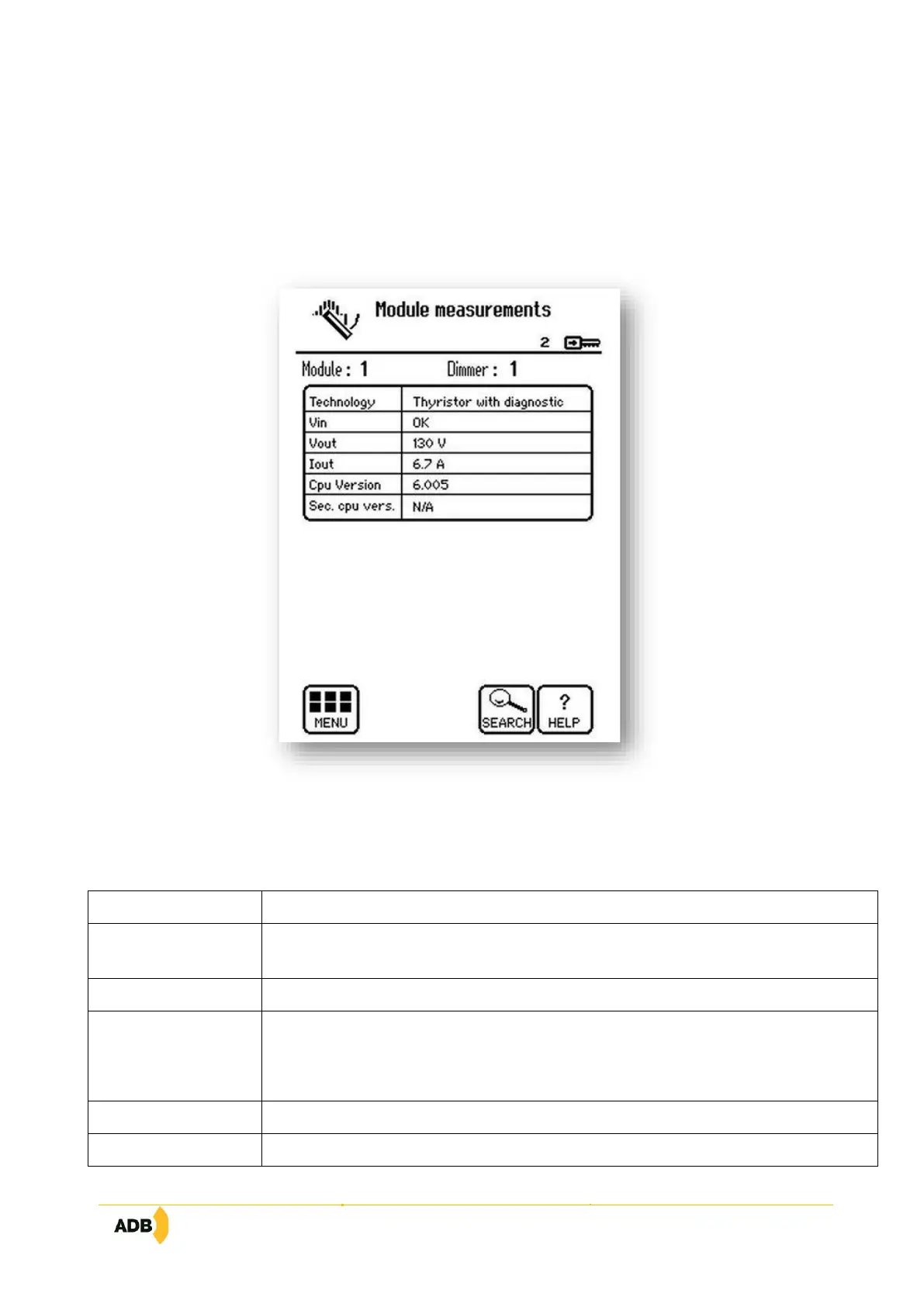 Only the sinewave or Dimswitch/fluo modules with full-diagnostic option can give measurements or