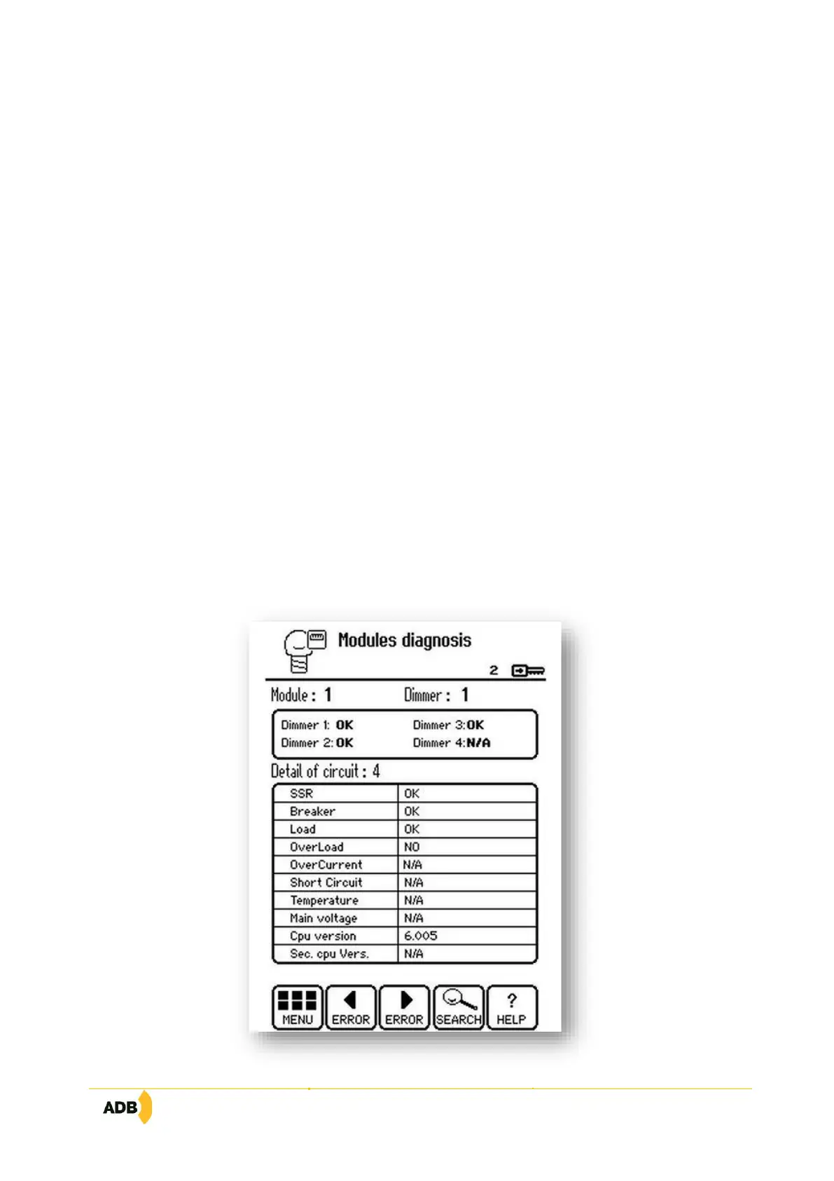 This menu is used to verify the operation of the modules and obtain detailed information on the operation