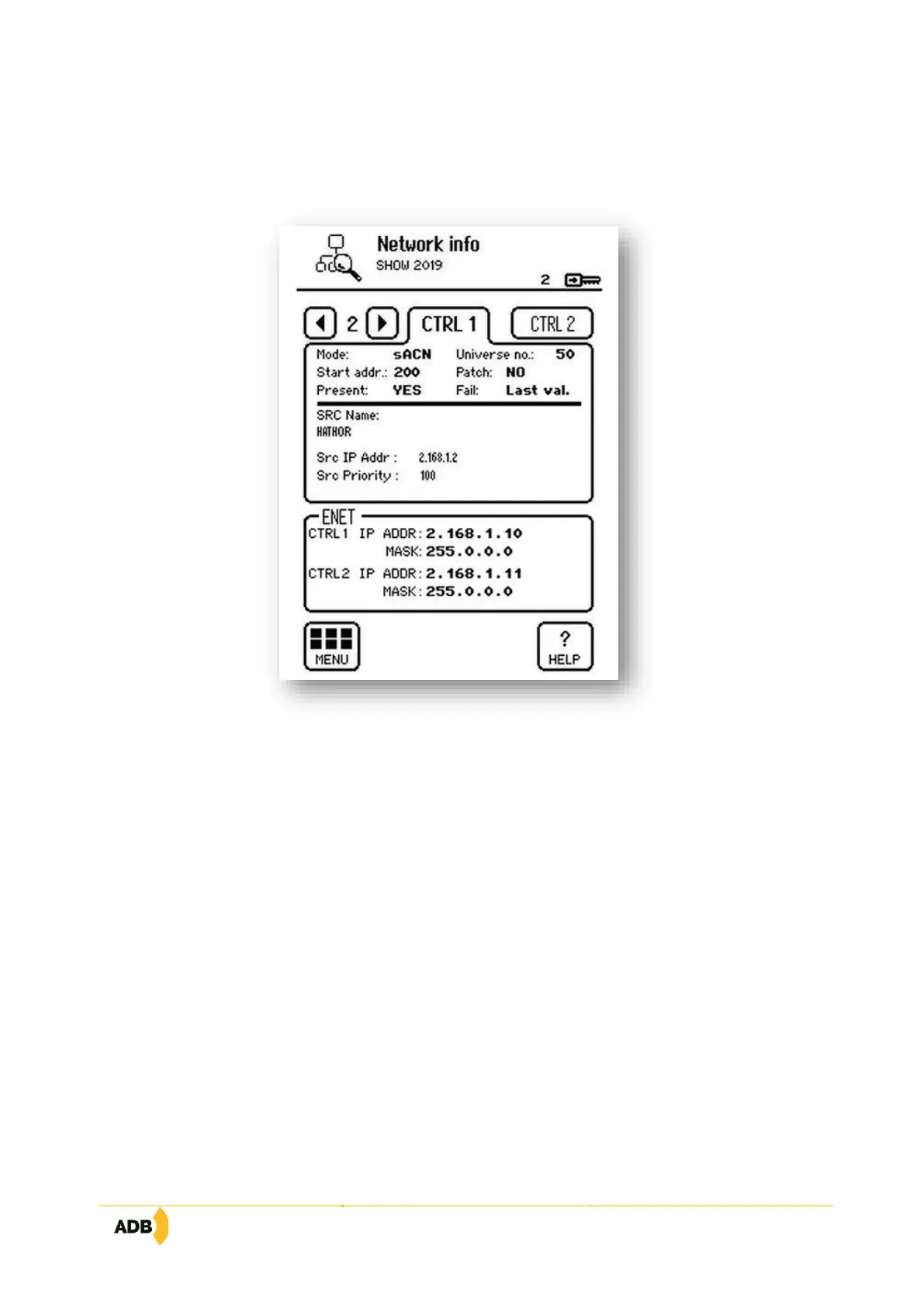 − Mode: Not used or ARNET or sACN (see "ENET SET" menu)