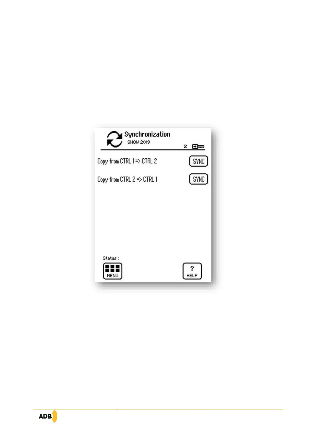 Touch one of the "SYNC" keys to launch the copy procedure between controllers, that is, from controller 1