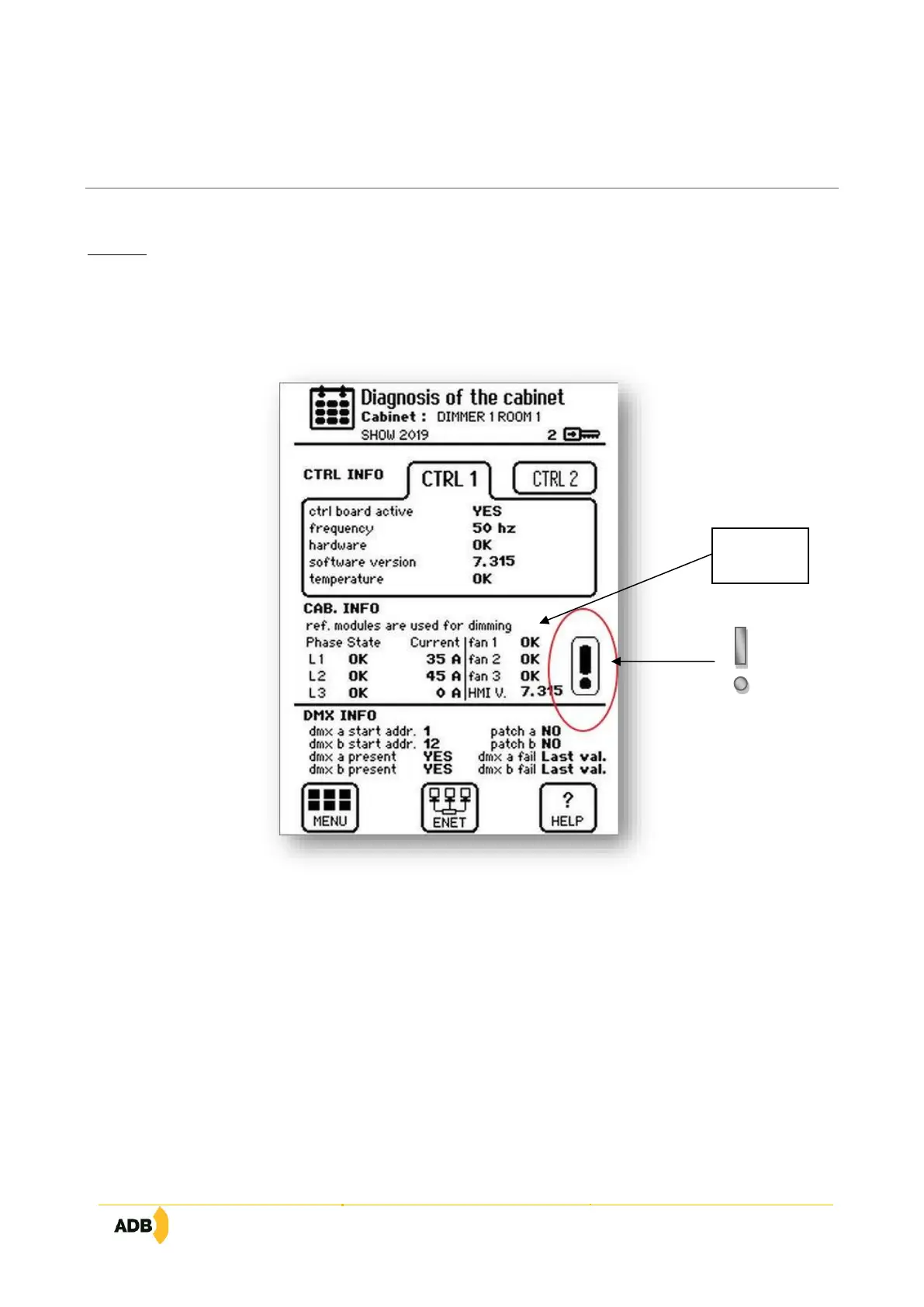 The cabinet diagnostic page indicates any malfunctions of the cabinet with a warning message.