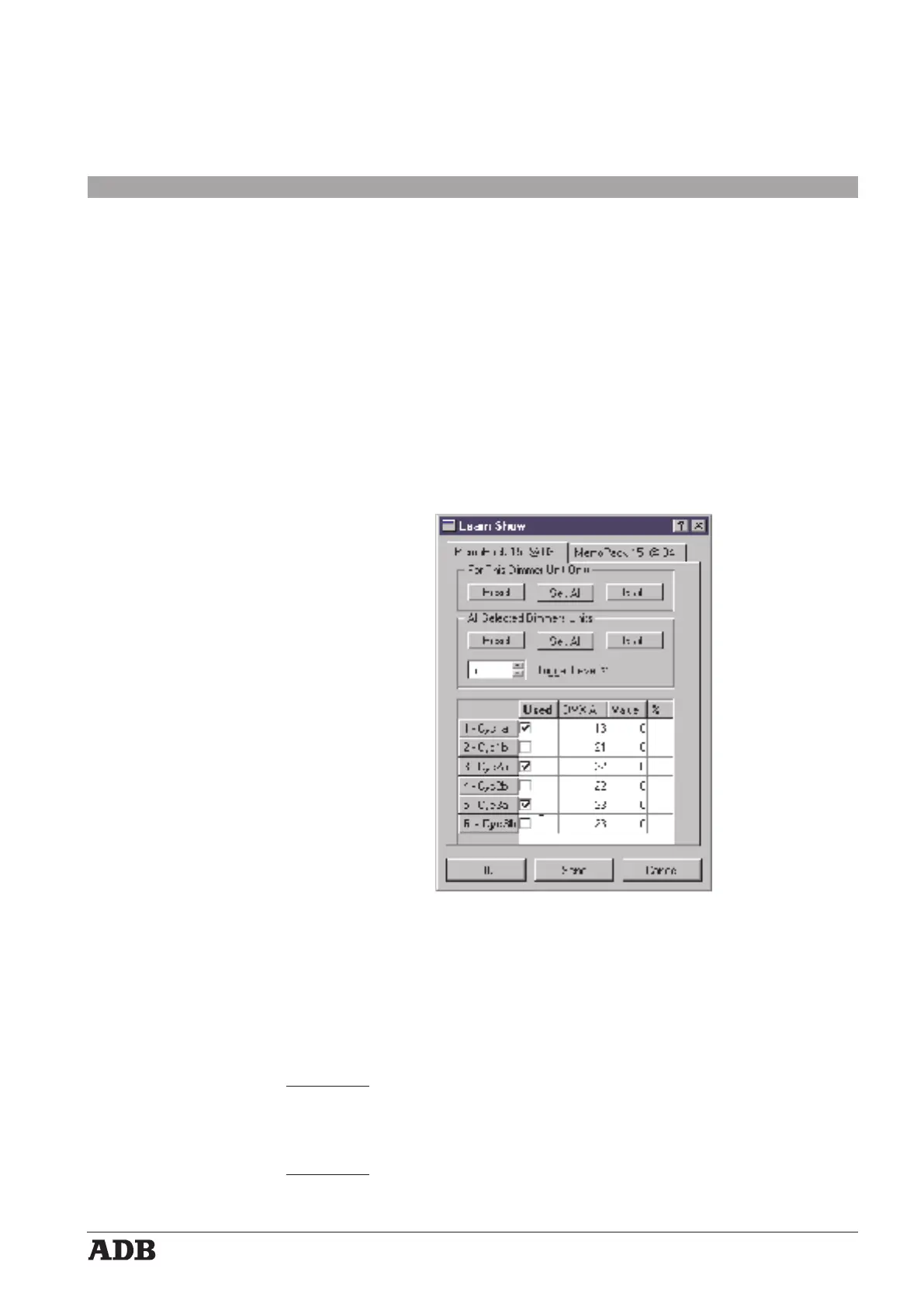 Learn Show is performed manually or automatically. In automatic mode, Used Dimmers are