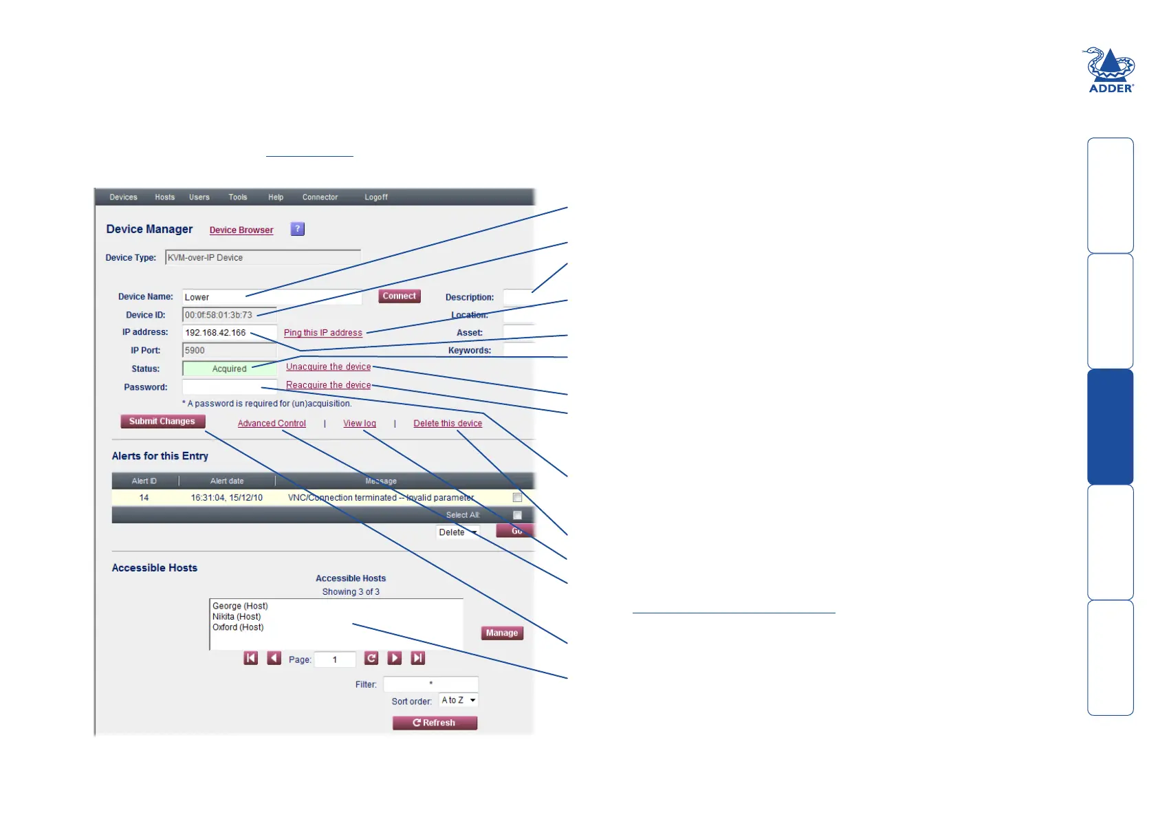 1 On the ADDER.NET Manager menu bar, place your mouse pointer over Devices and then choose Browse from the drop down list. The