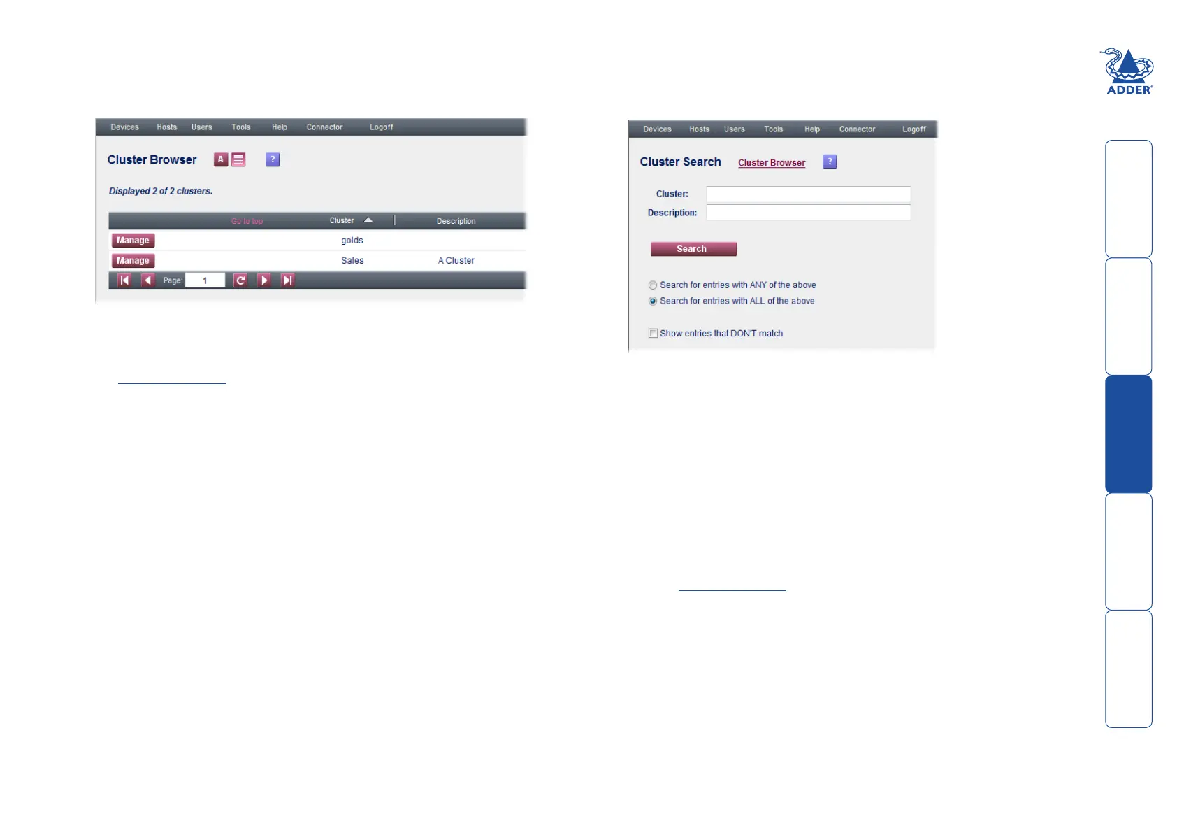 Devices and then choose Search Clusters from the drop down list. The
