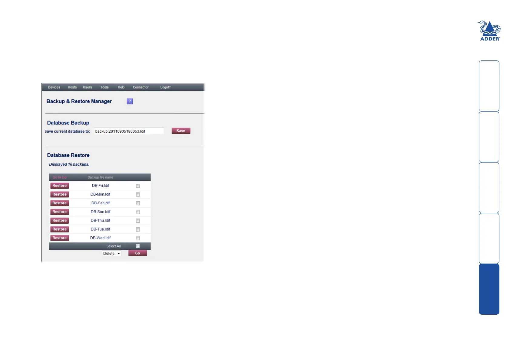 ADDER.NET does not maintain a list of manual backup files, it just provides