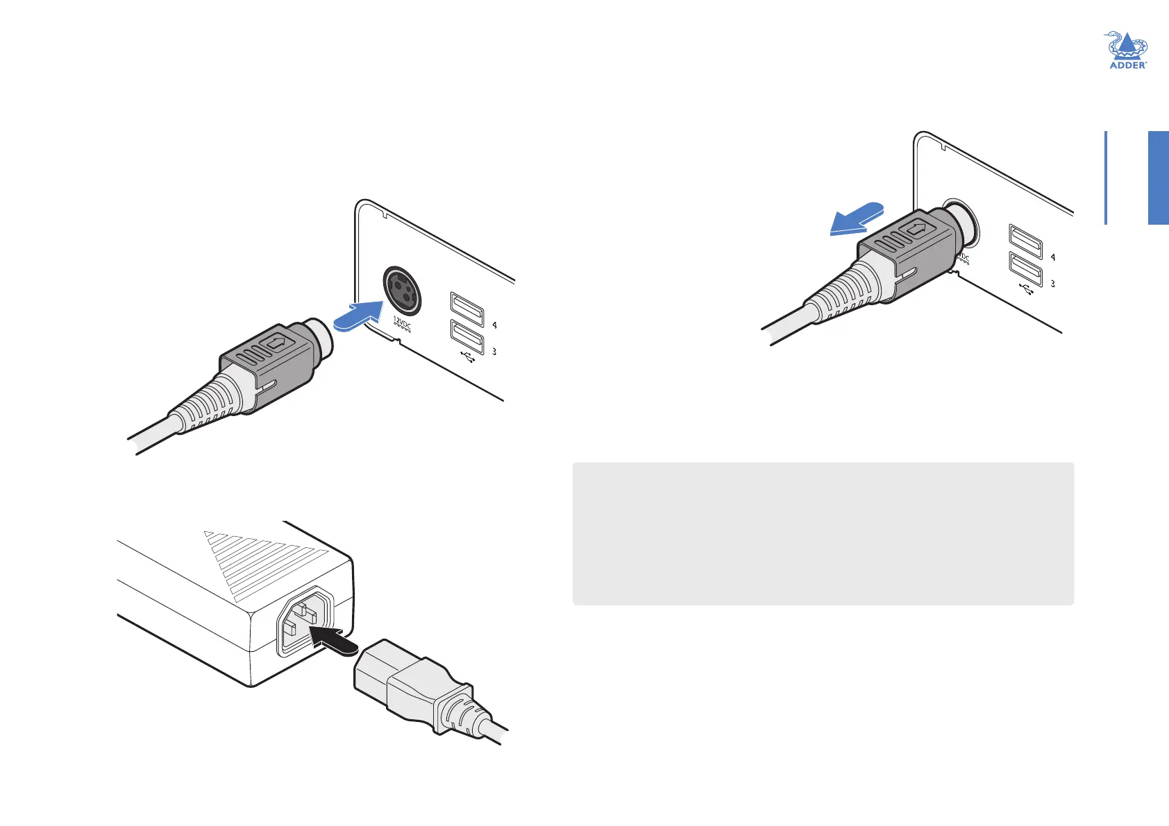 please follow the instructions shown on the right when disconnecting a power adapter.