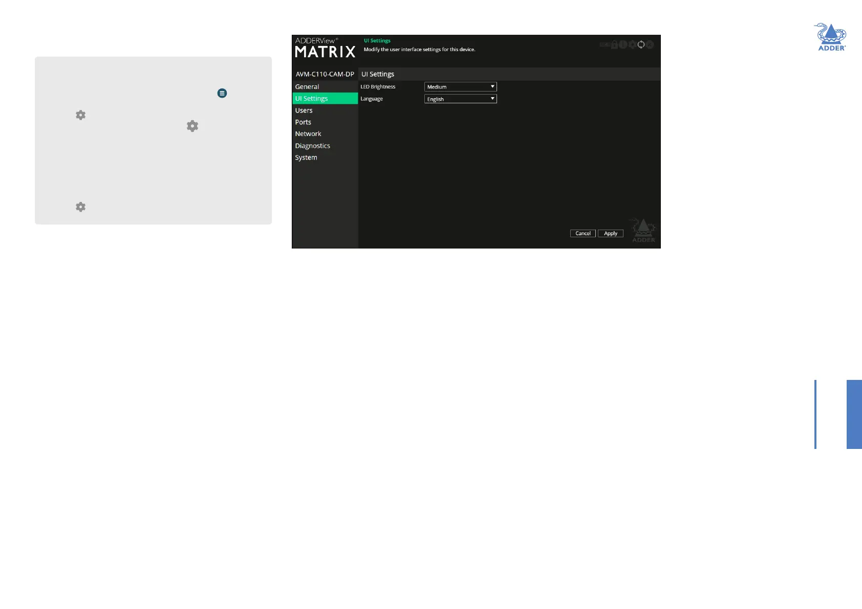 Bekijk gratis de handleiding van Adder View Matrix C110, stel vragen en lees de antwoorden op veelvoorkomende problemen, of gebruik onze assistent om sneller informatie in de handleiding te vinden of uitleg te krijgen over specifieke functies.