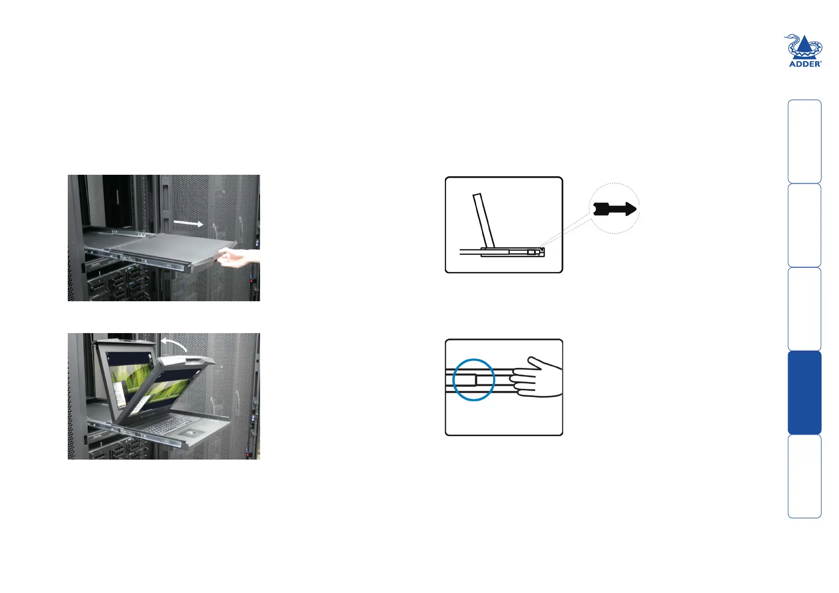1  Press the button on the carry handle at the front of the rack drawer unit and