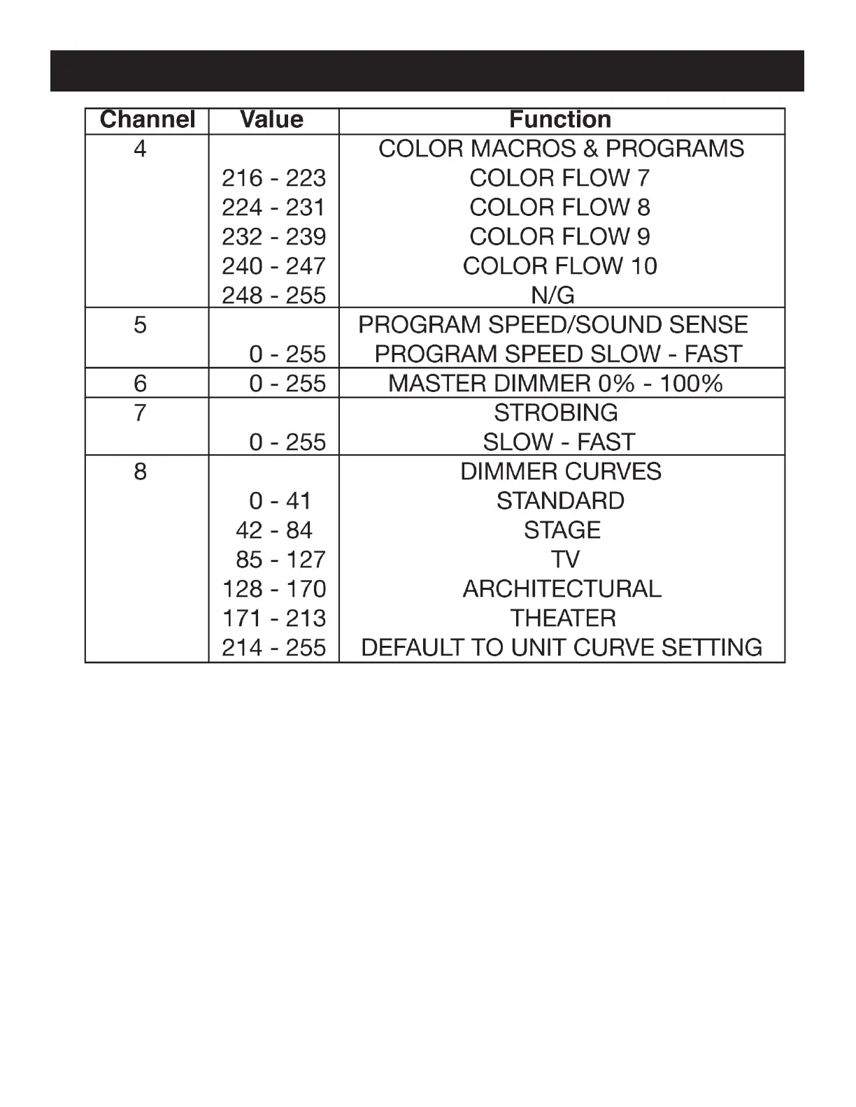 When Channel 4 is being used between the values of 240-255, Channel 5 will control sound sensitiv-