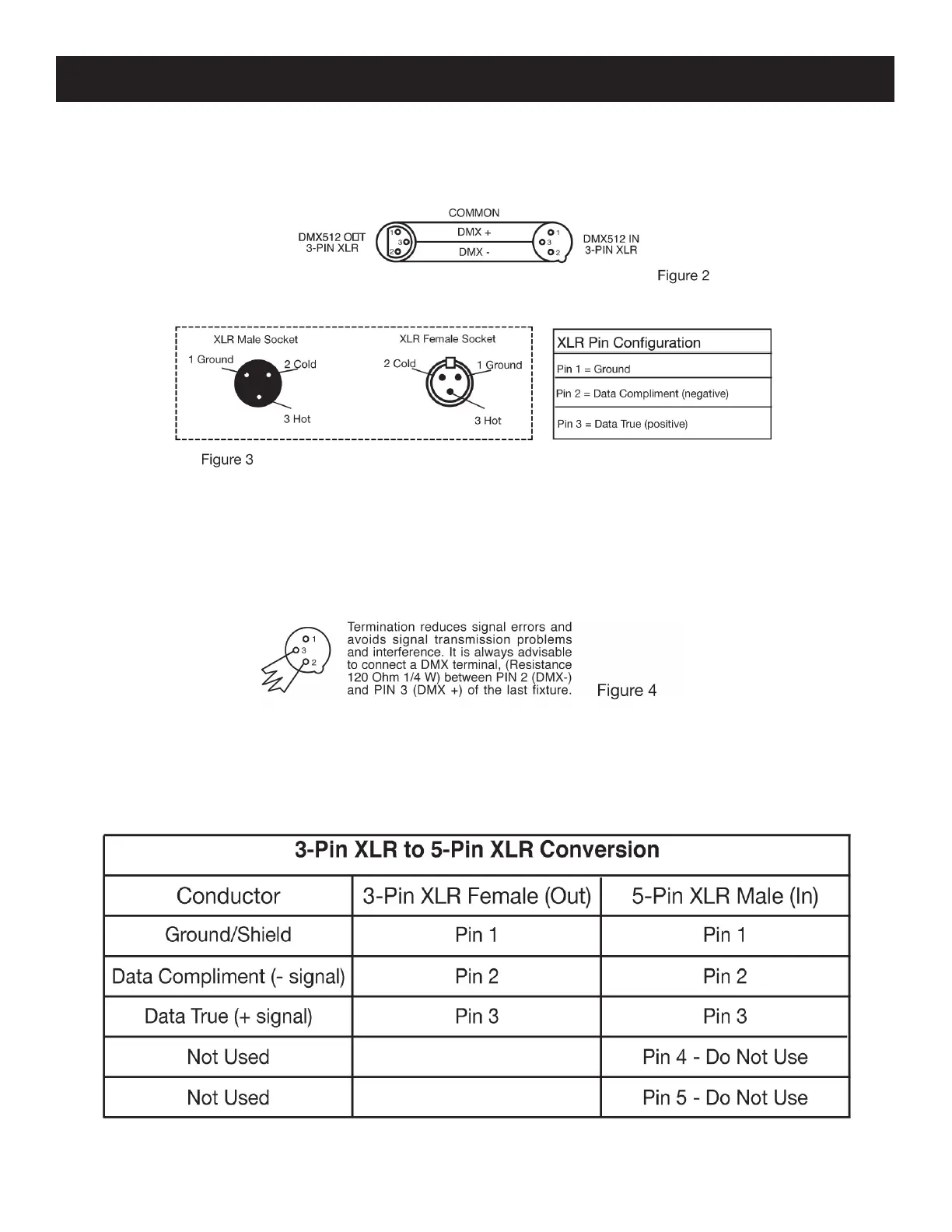 5-Pin XLR DMX Connectors. This unit use 5-pin DMX-512 data cables for DATA transmission. 5-pin