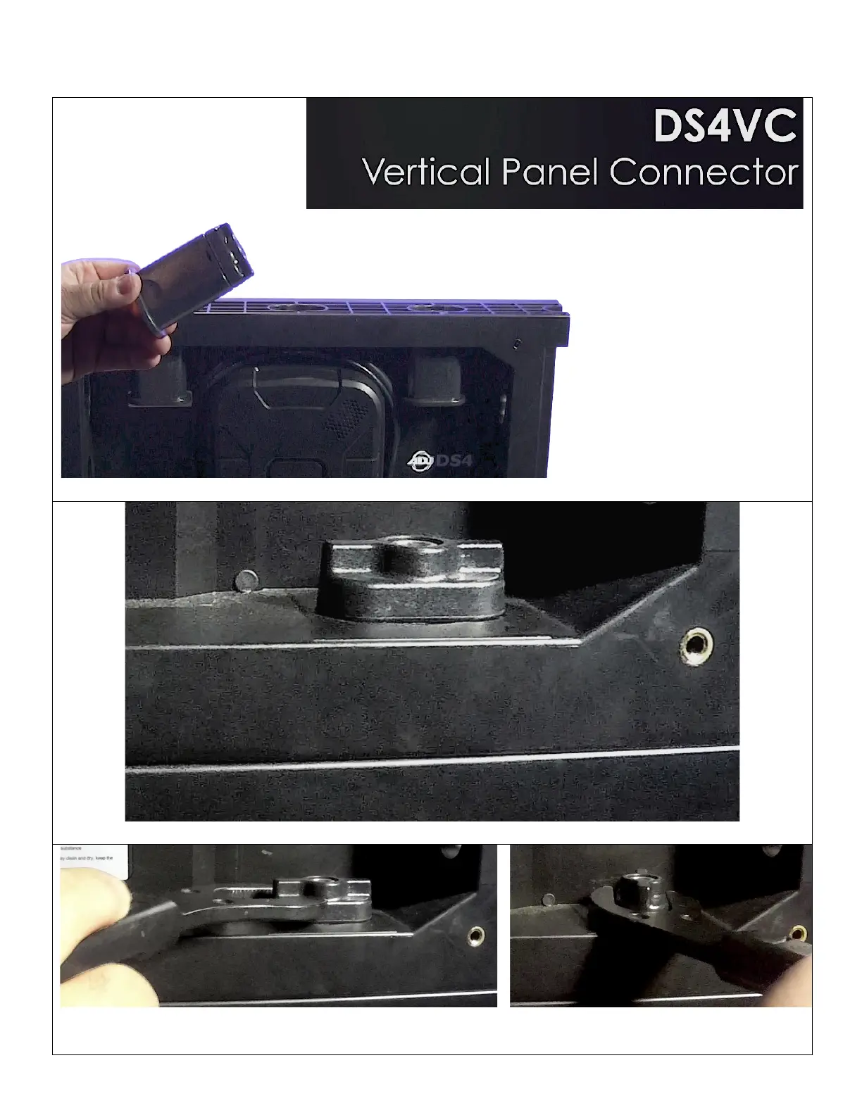 With!the!DS4VC!Horizontal!Connectors!installed!in!both!panels,!twist!their!locking!mechanism!