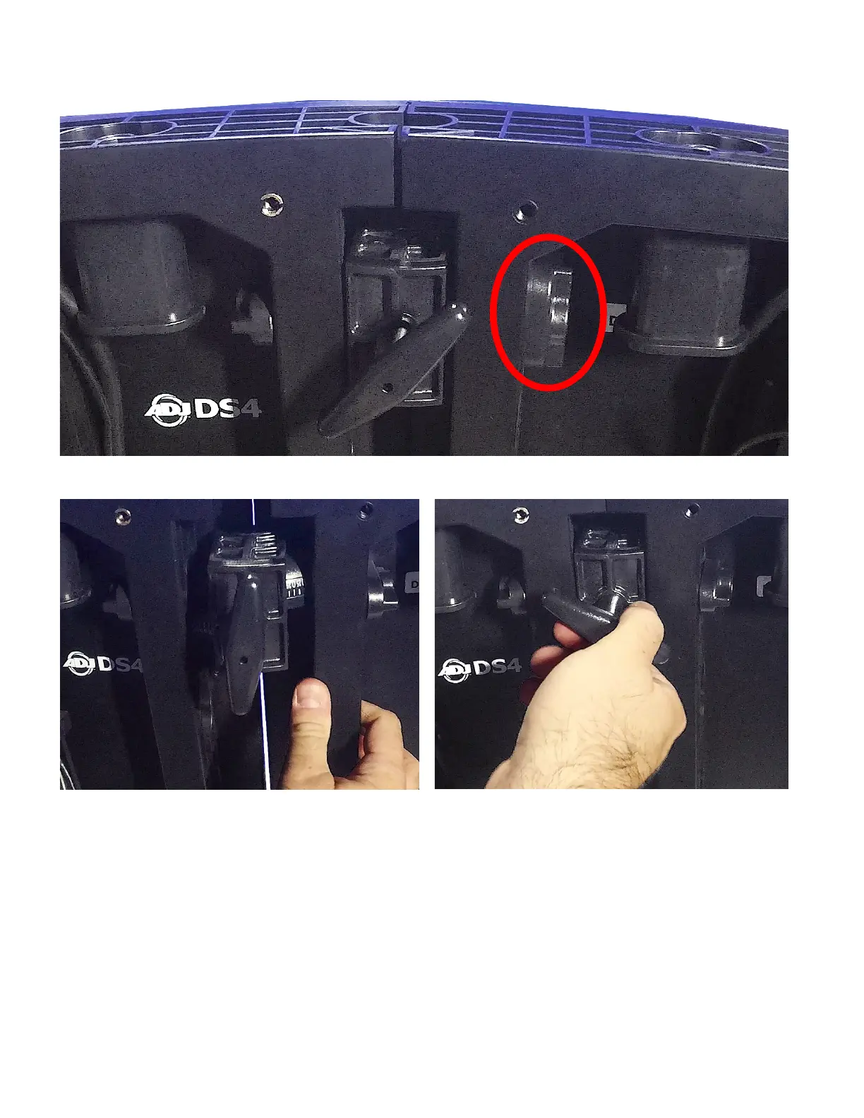 1.!With!the!DS4CC!Curve!Connectors!installed!in!both!panels,!twist!their!locking!mechanism!knobs!90°!to!