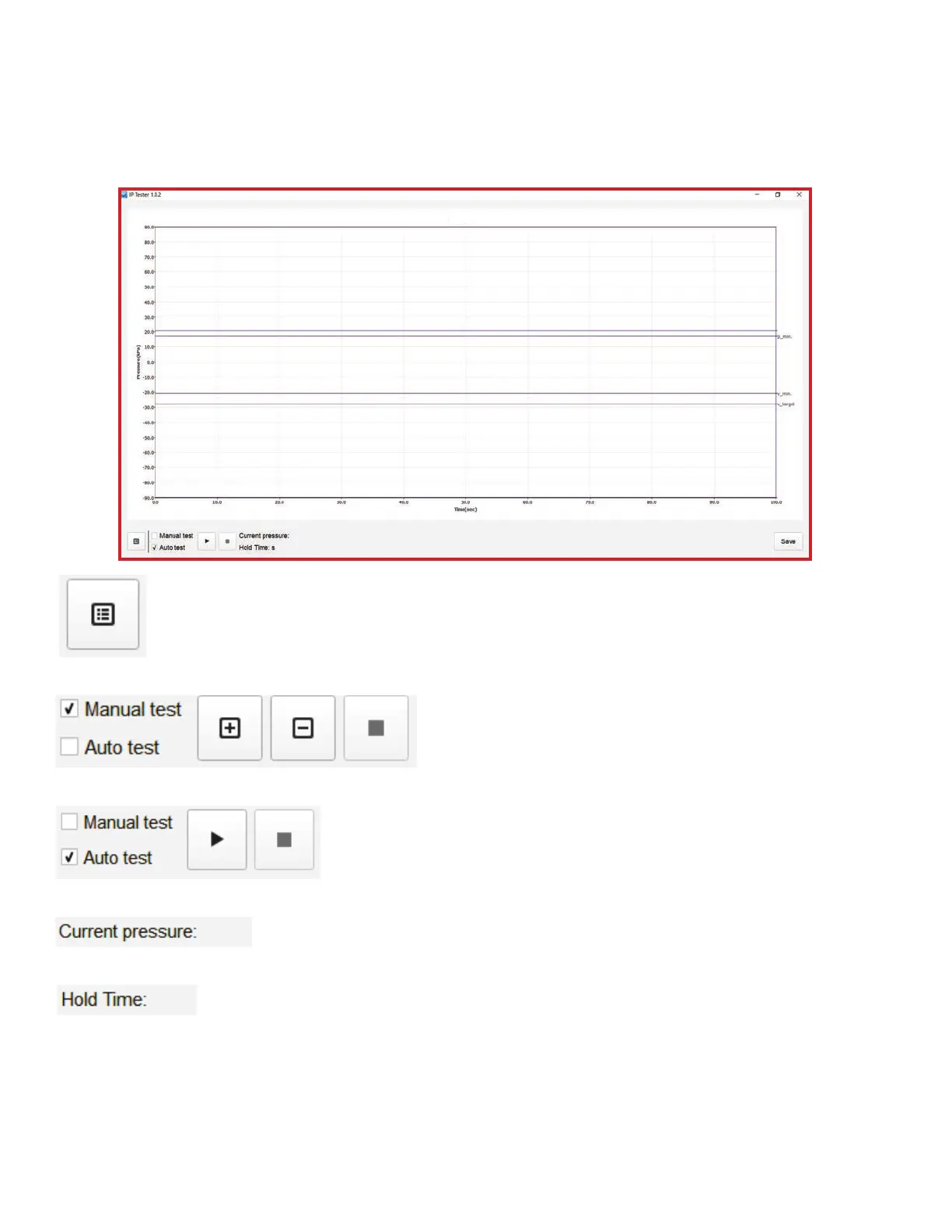 Manual test: Click (+) for Pressure Test, and (-) for Vacuum Test.