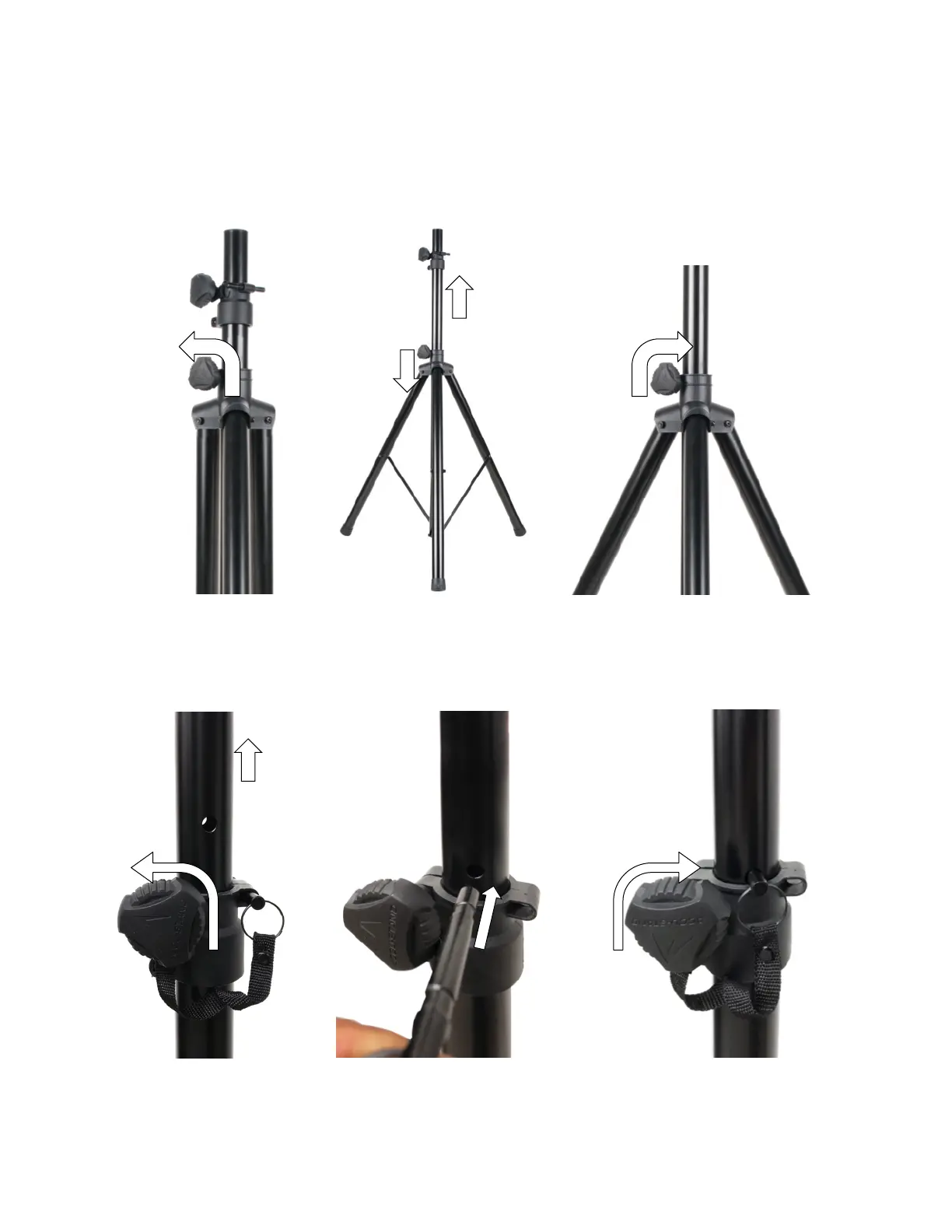 Loosen Knob B by turning it counter clockwise. Spread the legs by pulling up on the outer pipe until