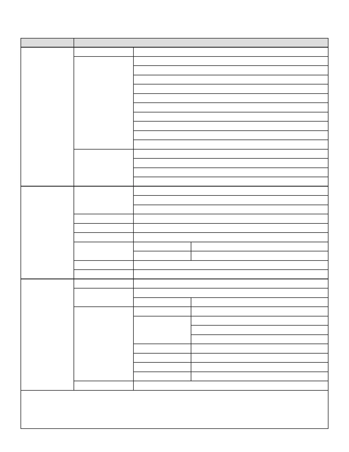 MAIN MENU OPTIONS / VALUES (Default Settings in BOLD)