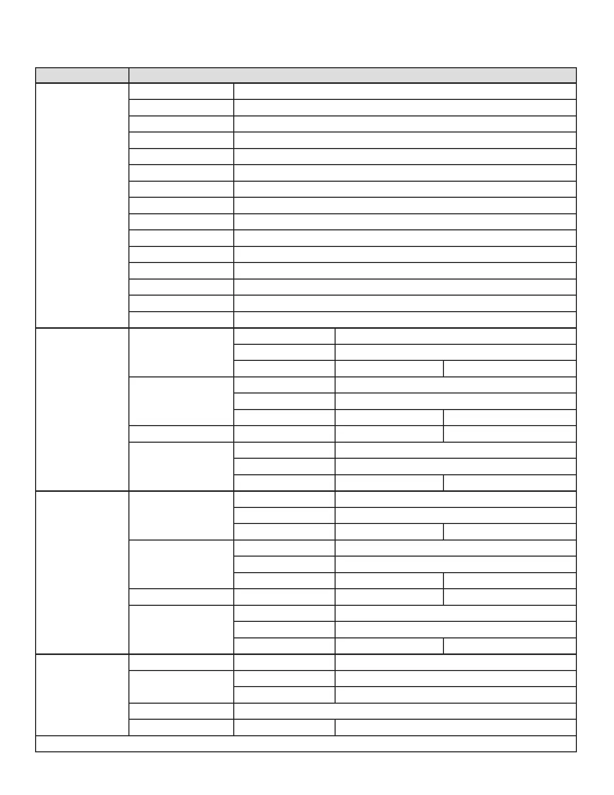 MAIN MENU OPTIONS / VALUES (Default Settings in BOLD)