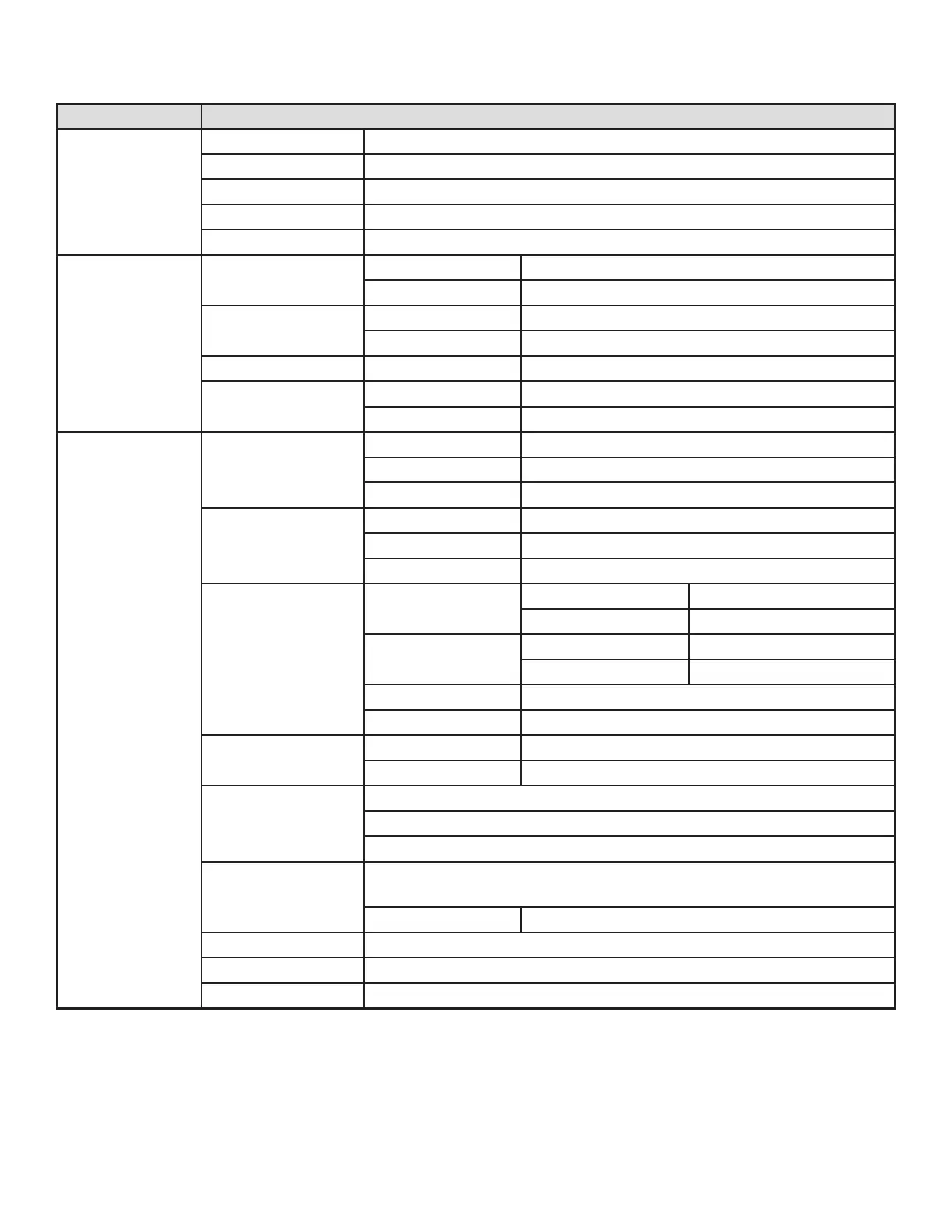 MAIN MENU OPTIONS / VALUES (Default Settings in BOLD)