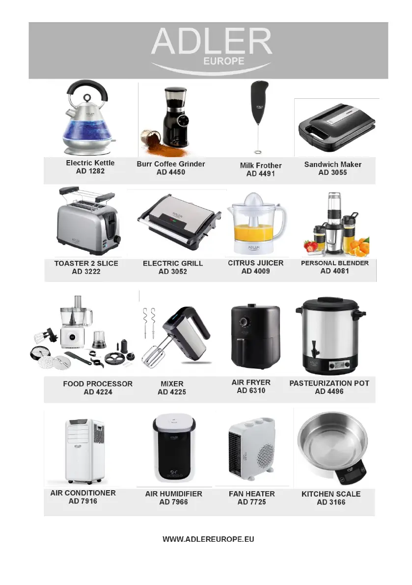 Bekijk gratis de handleiding van Adler AD 7336, stel vragen en lees de antwoorden op veelvoorkomende problemen, of gebruik onze assistent om sneller informatie in de handleiding te vinden of uitleg te krijgen over specifieke functies.
