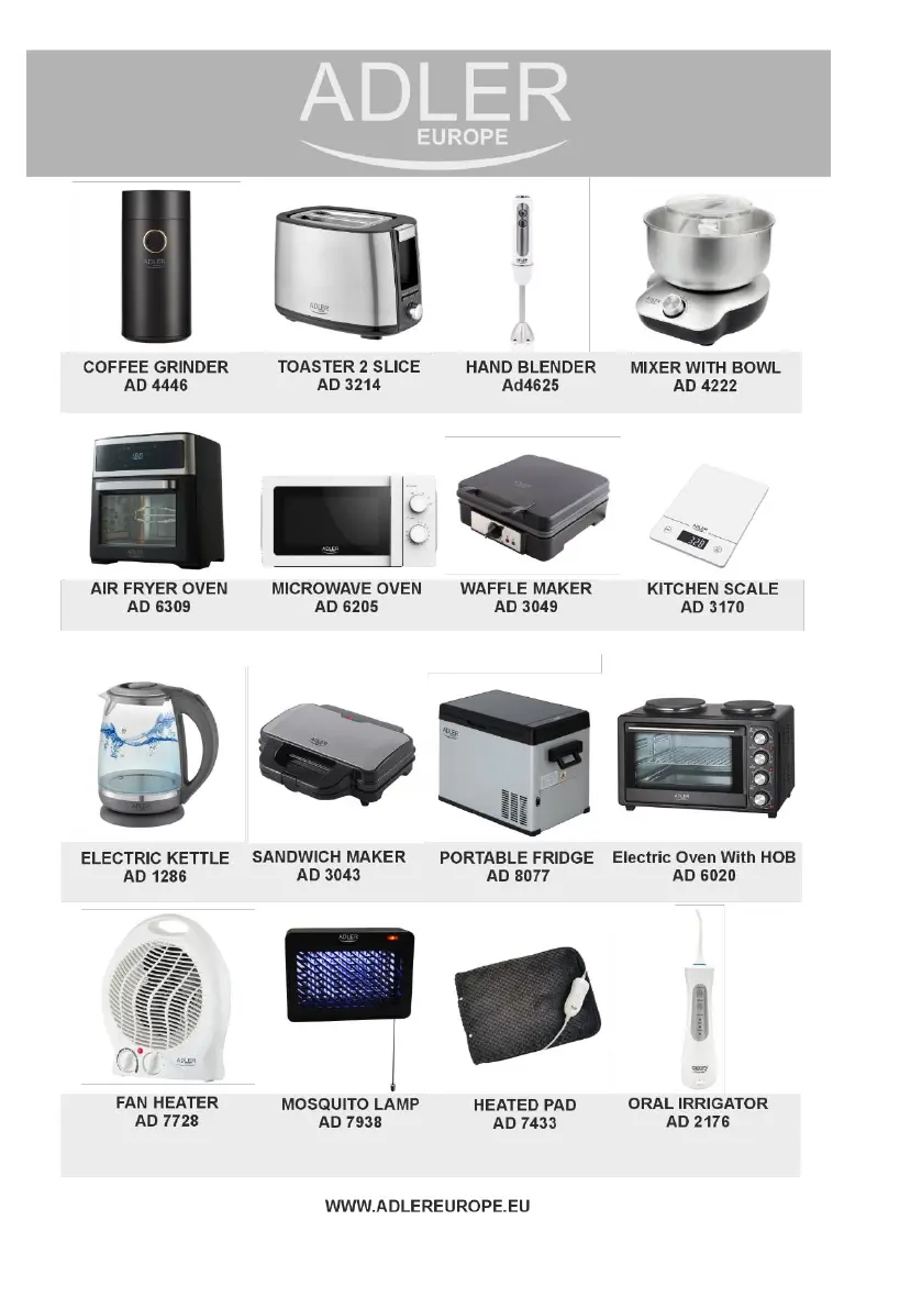 Bekijk gratis de handleiding van Adler AD 7336, stel vragen en lees de antwoorden op veelvoorkomende problemen, of gebruik onze assistent om sneller informatie in de handleiding te vinden of uitleg te krijgen over specifieke functies.