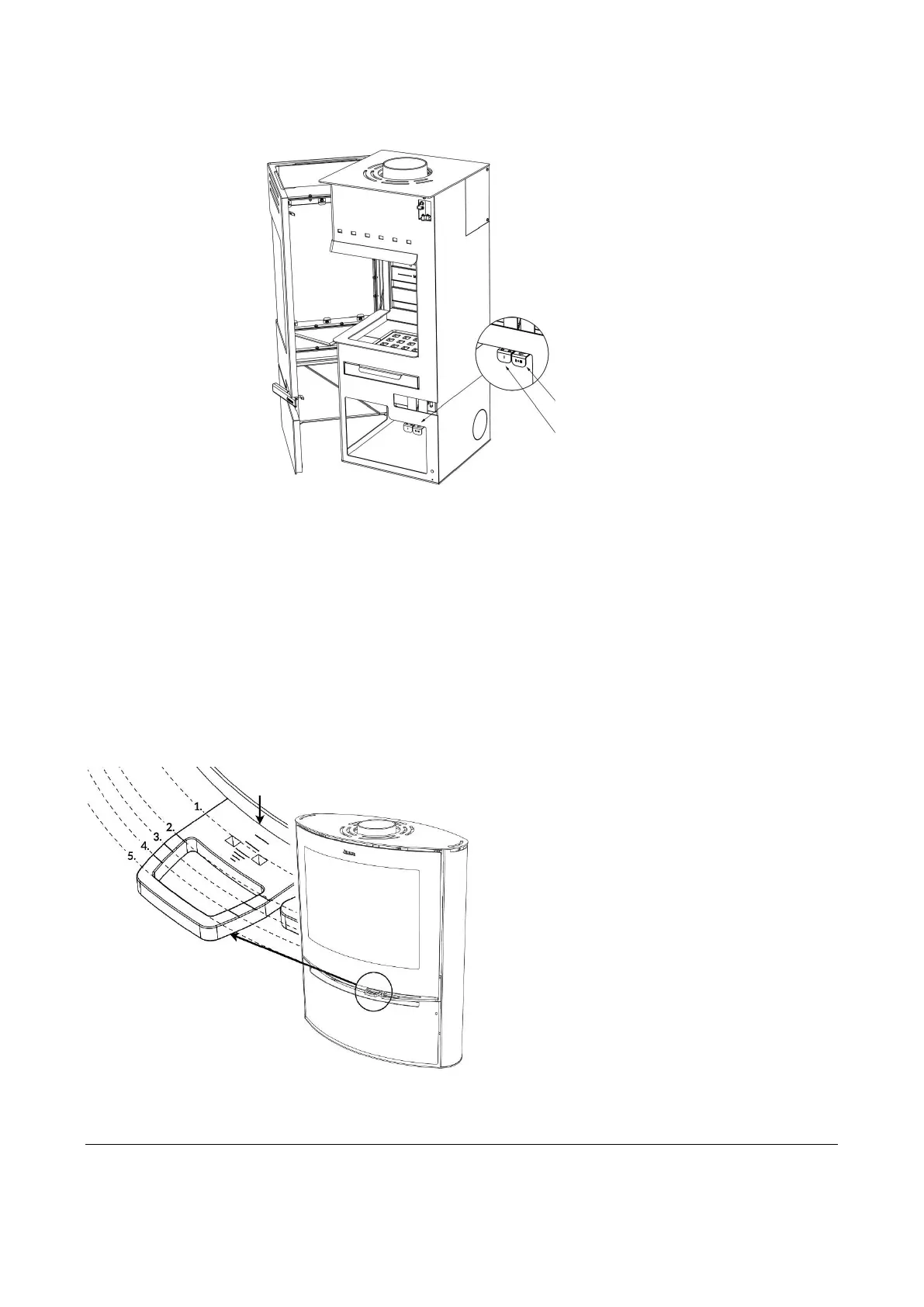 braskaminen. Glasskyddet, som förhindrar sot på framglaset, styrs även med hjälp av detta spjäll.