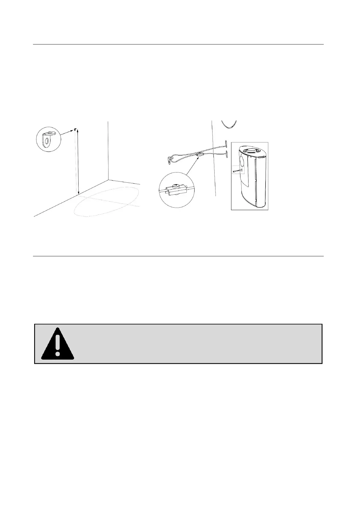 1. Atornille la fijación en la pared, a la altura de la parte central de la estufa: a unos 53 cm del suelo