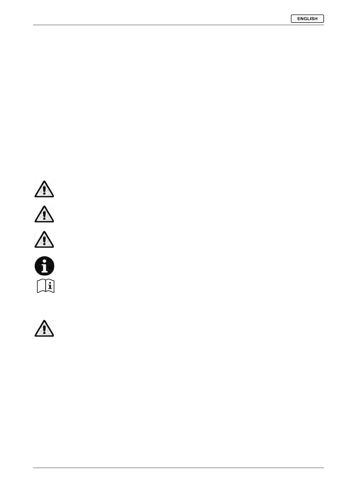 Specific warnings and cautions to inform about potential damages to people and machine are shown below.