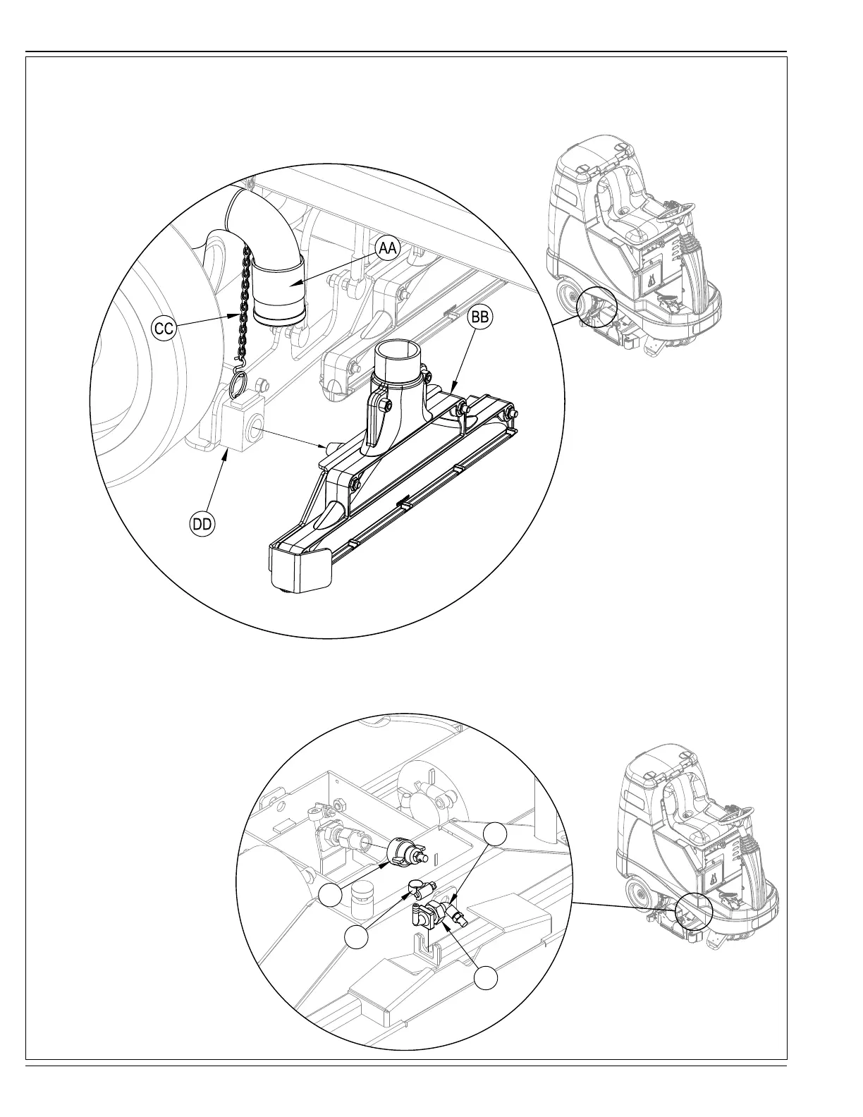 3 Remove the Restoration Nozzle (FF) by loosening Hose Clamp (GG) and disconnecting the solution hose and then loosening Nut (HH). The Nozzle