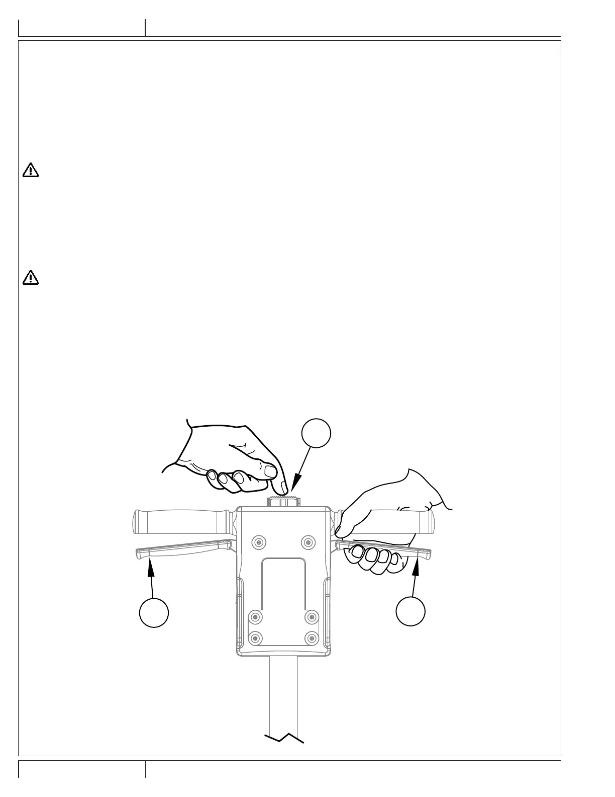 5 See Figure 4. Push the Switch Lever Safety Lock Button (2), and apply pressure to the Switch Levers (3). To stop the machine, release the
