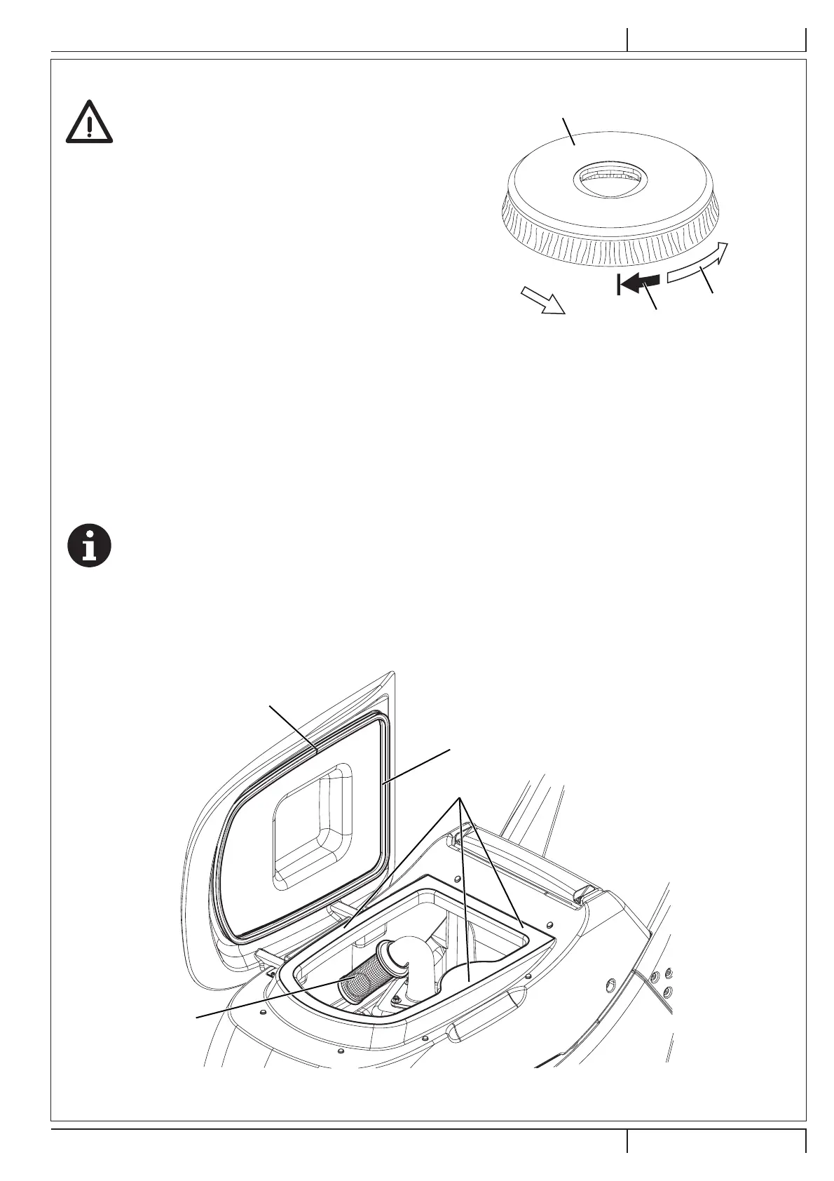 6. Controlar la integridad de la guarnición (B) de la tapa del depósito del agua de recuperación.