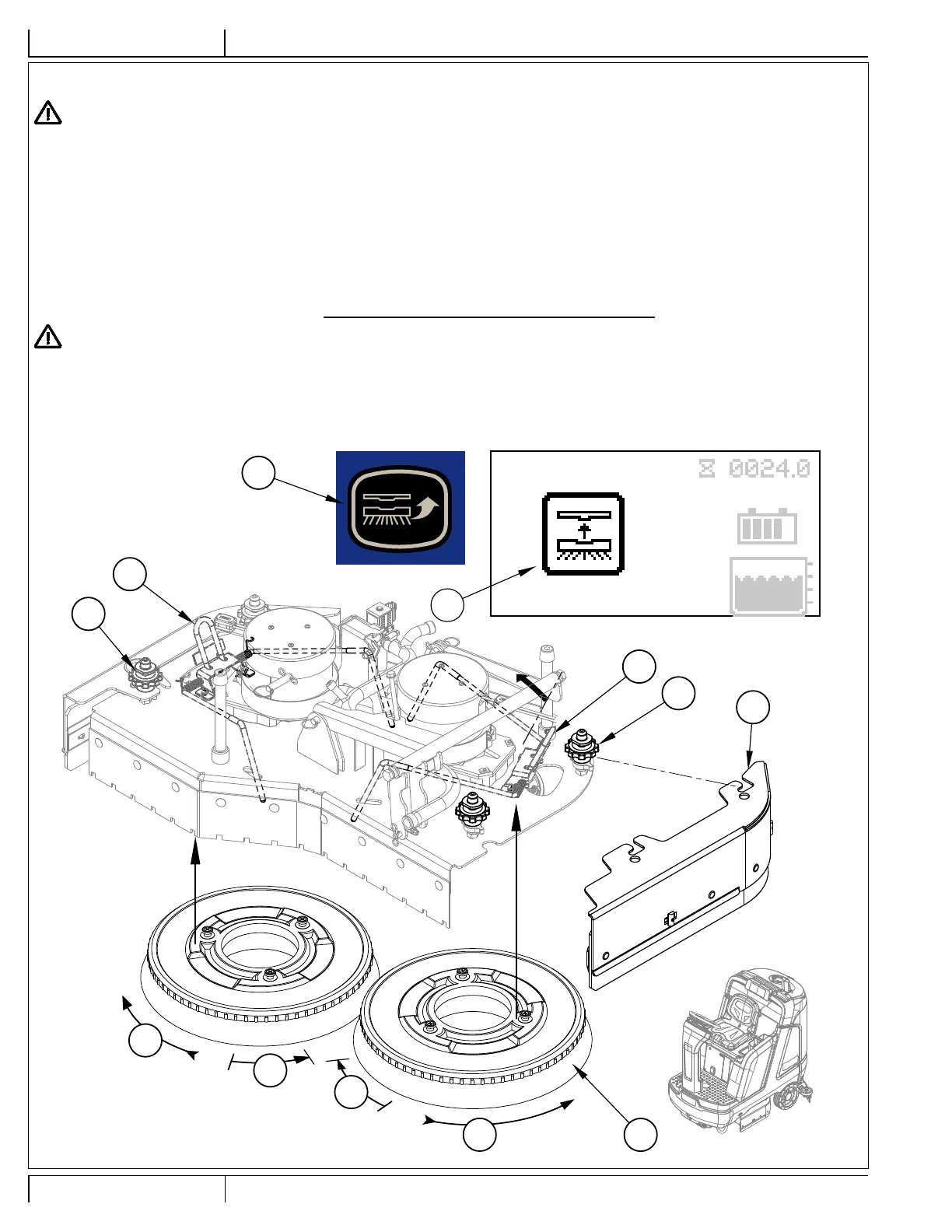 1 Make sure the Scrub Deck is in the RAISED position. Make sure the Power Switch (H) is off.