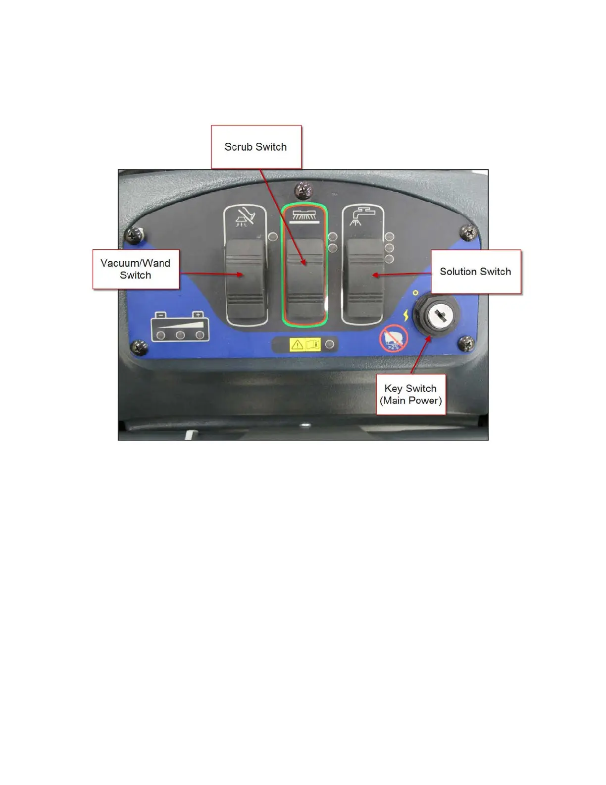o Cylindrical Models – Pressing the switch forward lowers the scrub deck and enables all scrub funcons.
