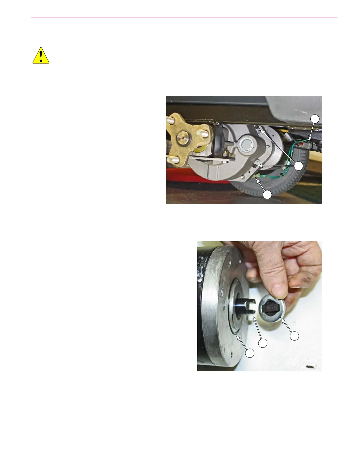 − To avoid instability of the lifted machine, block the rear (caster) wheels so that the