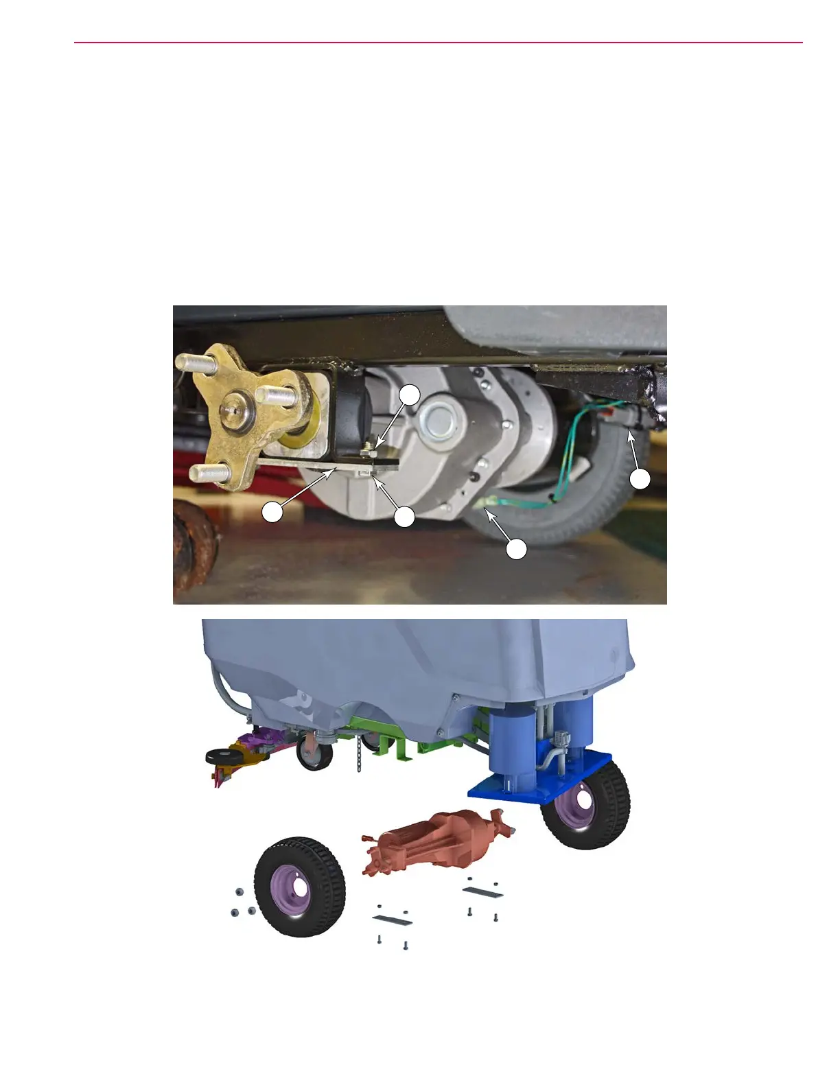 13. With the retaining plates removed, lower the transaxle to the oor. Note the orientation, with the motor