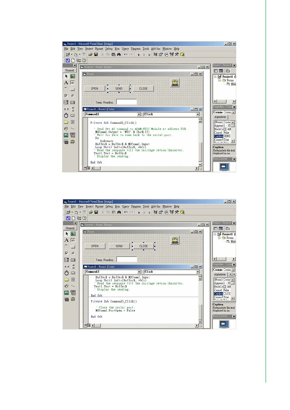 9. Click CLOSE and enter the following code (source code examples are listed at