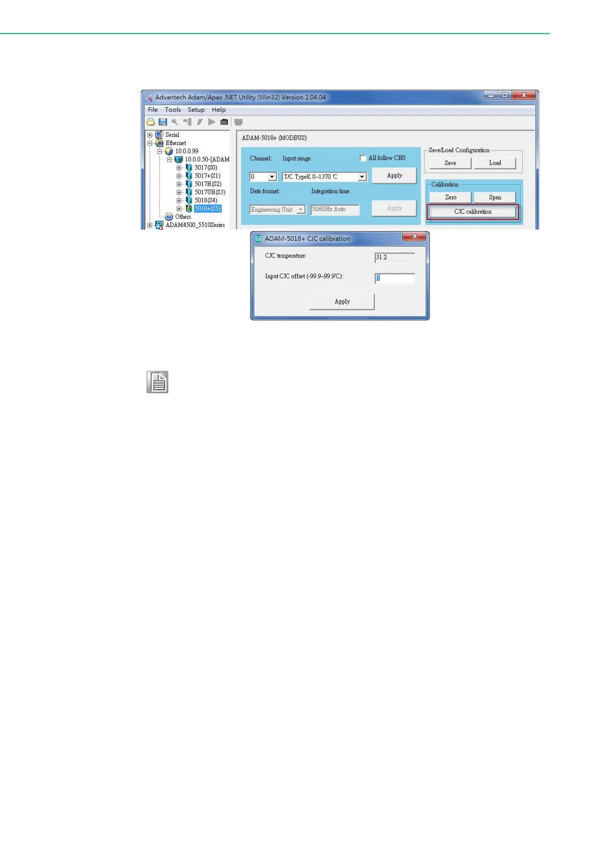 calibration. To calibrate CJC, the thermocouple attached to ADAM-5018
