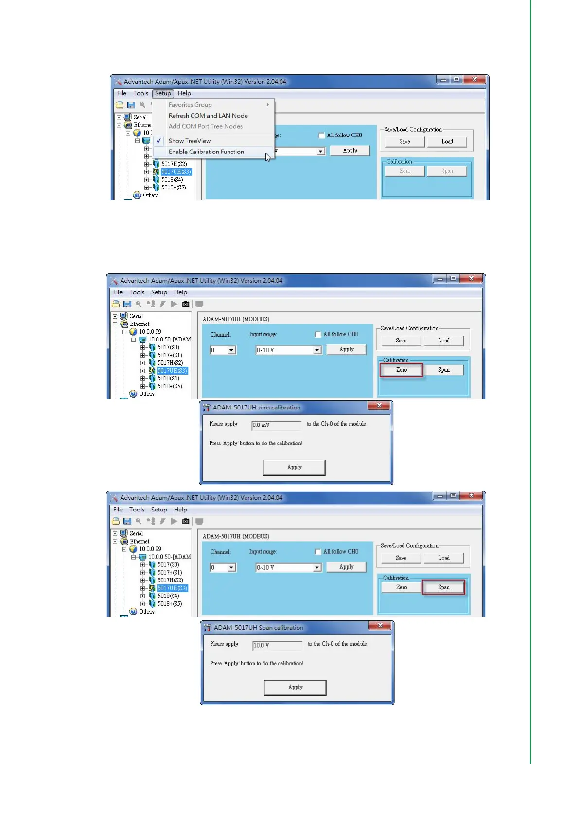 5. Use a precision voltage source to apply a span calibration voltage to the mod-