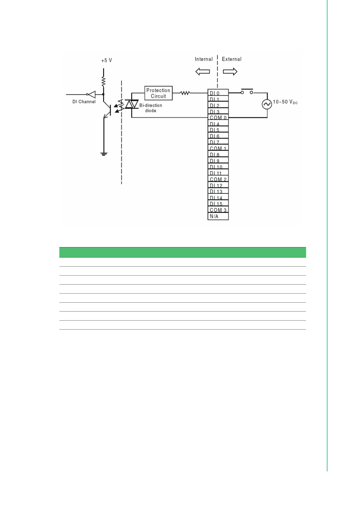 Digital Input Logic Level 0: + 3 V max Logic Level 1: + 10 to 50 V