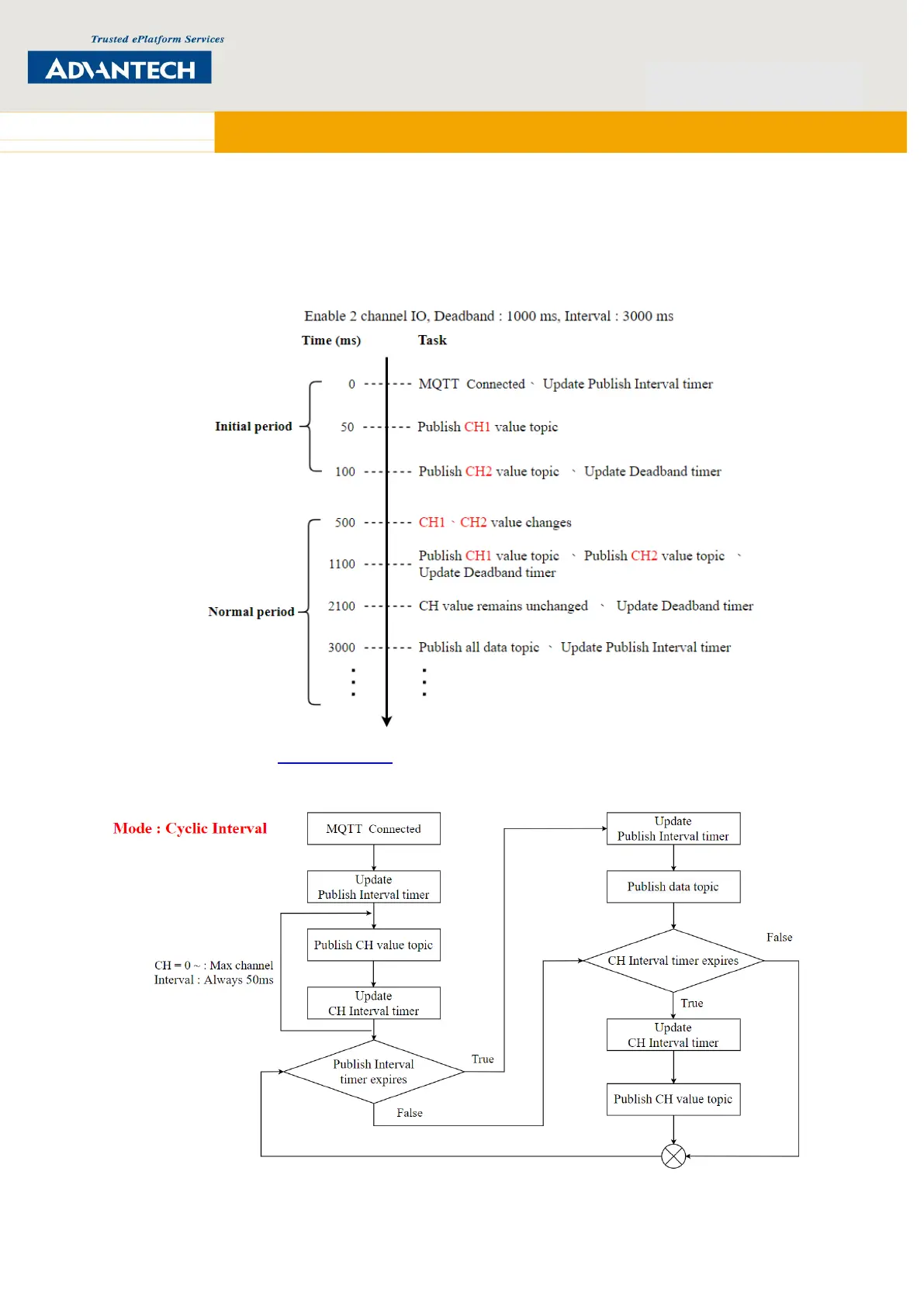 CH value topics are published, the Deadband timer starts and enters the normal state. After each Deadband