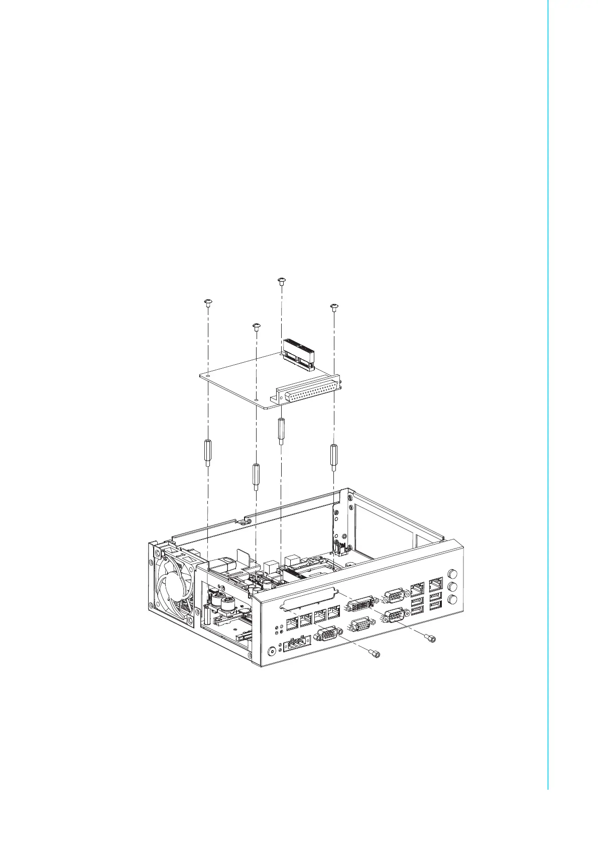 2. Install the AIIS-DIO32 with 2 stand-offs and 2 screws.