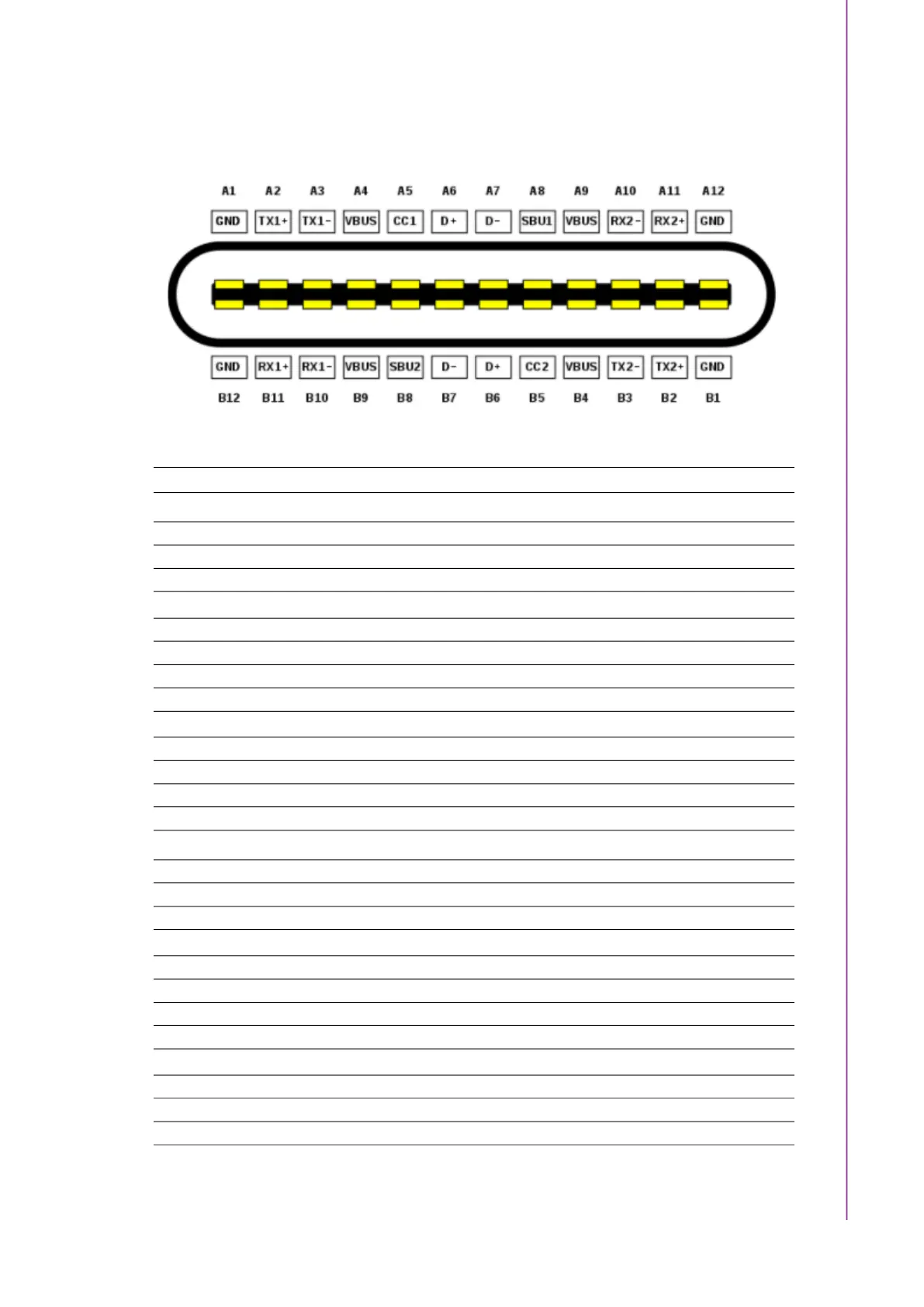 Type-C receptacle A pin layout