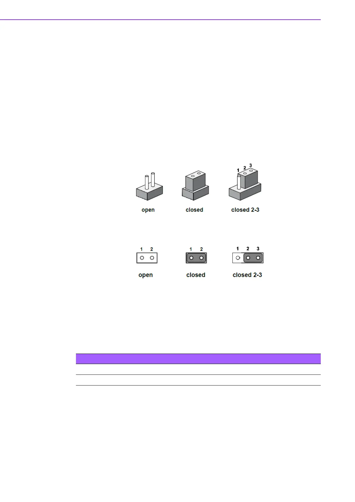 the pins to connect them. To close a jumper, you connect the pins with the clip. To