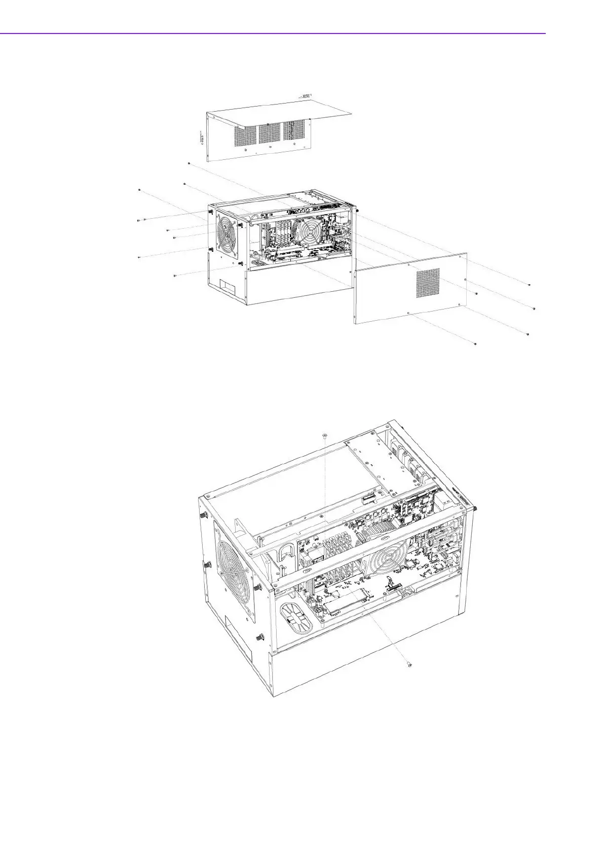 1. Remove 14 screws from the top cover and side cover.