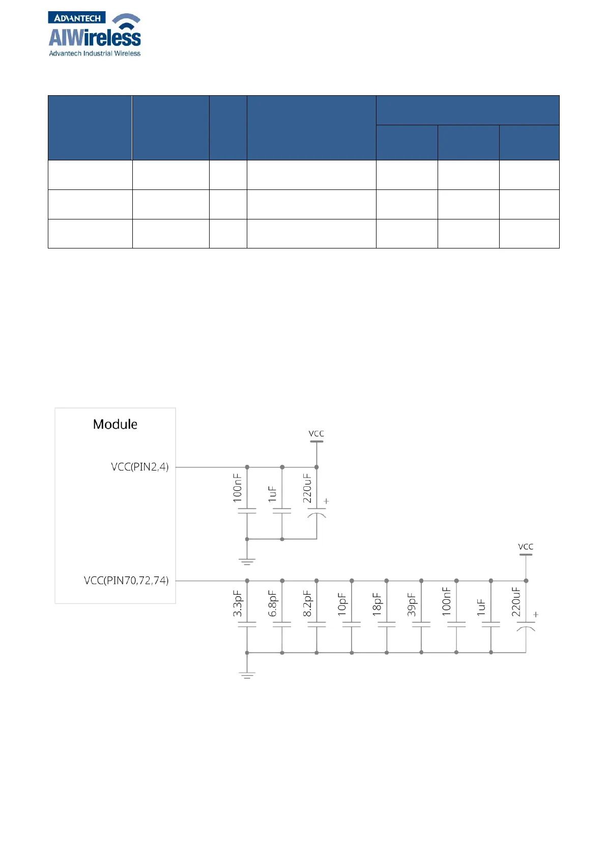The AIW-356 DQ-N01 module should be powered through the VCC pins, with the continuous
