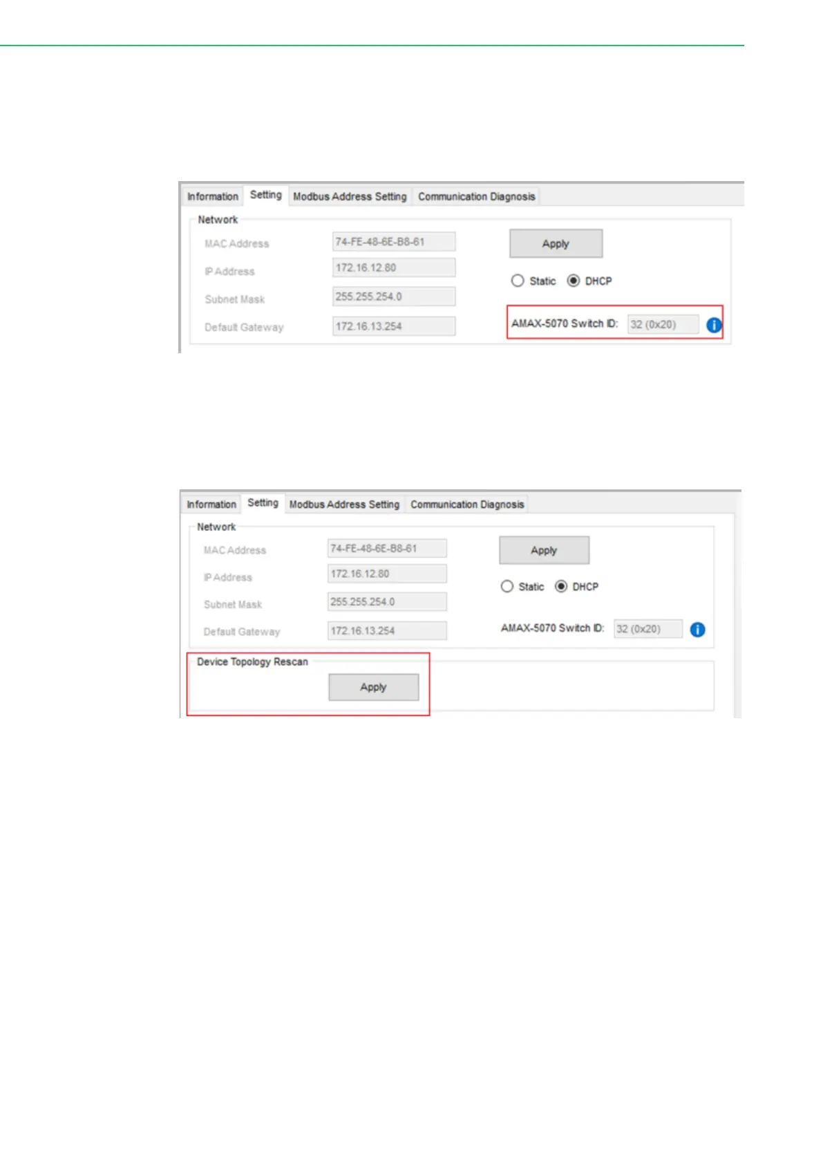 AMAX-5070 rotary switch state would be displayed in the Setting page (Figure 3.13).
