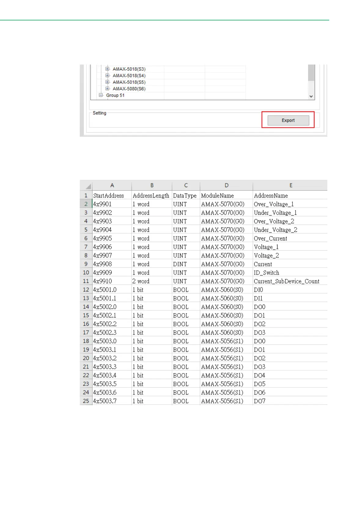 3.4.2 Export the List of Modbus TCP Addresses for All Modules